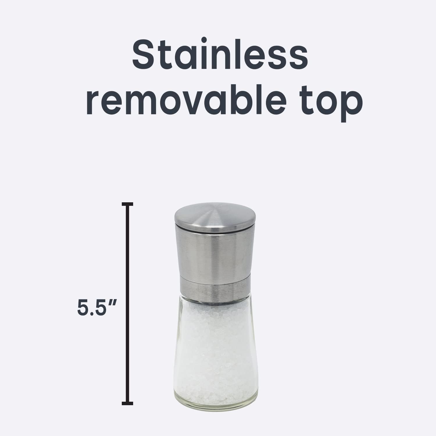 - A kitchen or restaurant essential: Our 5.5" Brushed Stainless Steel & Glass Bavaria Salt Mill is a professional-quality mill that creates a stunning tablescape.