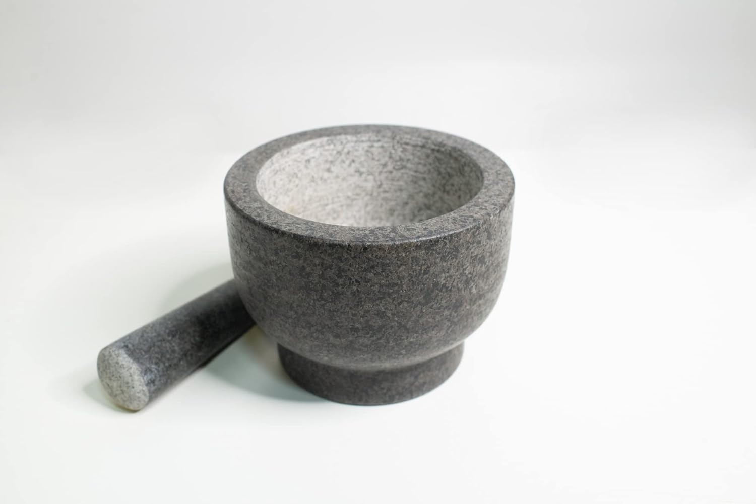 - NATURAL GRANITE: This mortar and pestle is made of solid uncoated granite. The untreated rough interior features a coarse finish to facilitate grinding, and the tall walls won't let ingredients escape. This food prep accessory is an ancient kitchen tool used to enhance flavors in traditional Mexican, Indian, and Italian cooking.