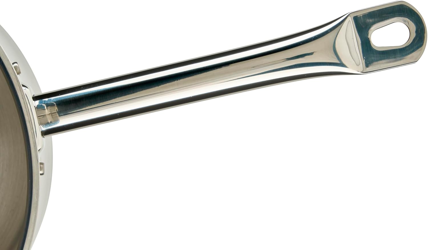 - Tri-Ply Construction โ Aluminum core sandwiched between two layers of steel provides even heat distribution