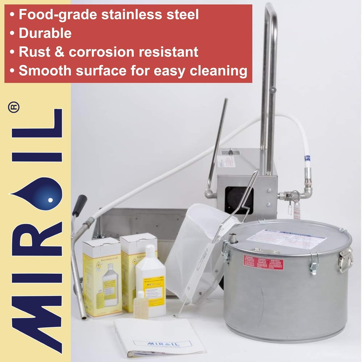 - EASY TO USE ELECTRIC FRYER OIL FILTRATION SYSTEM WITH REUSABLE FILTER BAG AND DISCARD TROLLEY - The MirOil BD 707 Electric Fryer Oil Filtration System simplifies fryer upkeep with its efficient and user-friendly design. Simply drain your fryer oil through the included reusable MirOil filter bag into the discard trolley, then flip the switch to pump clean, filtered oil back into your fryer with ease. This hassle-free system saves time, reduces waste, and extends oil life, ensuring superior food quality.