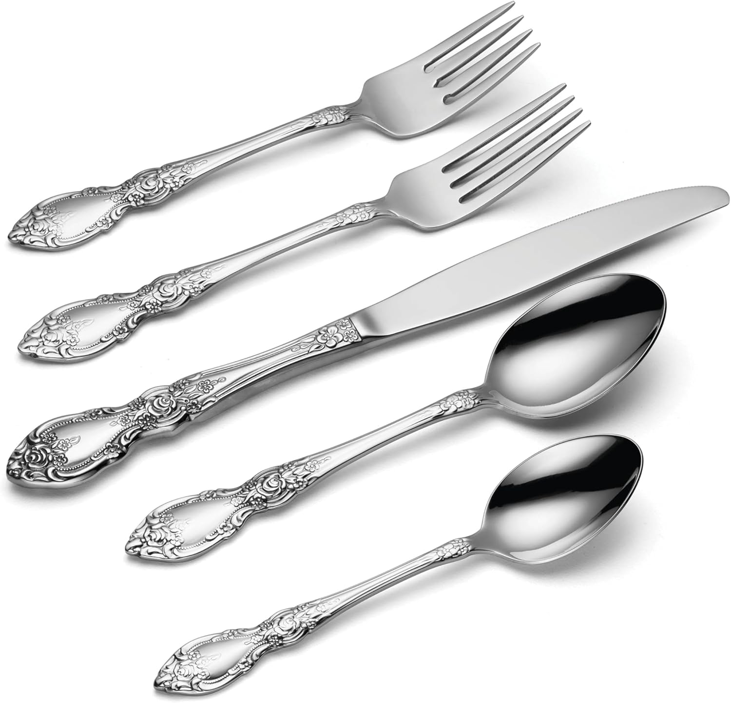 - TOP QUALITY: What distinguishes silverware to the touch? Finish and weight. This expertly crafted pattern is mirror finished and heavy in the hand. The result? Perfection.