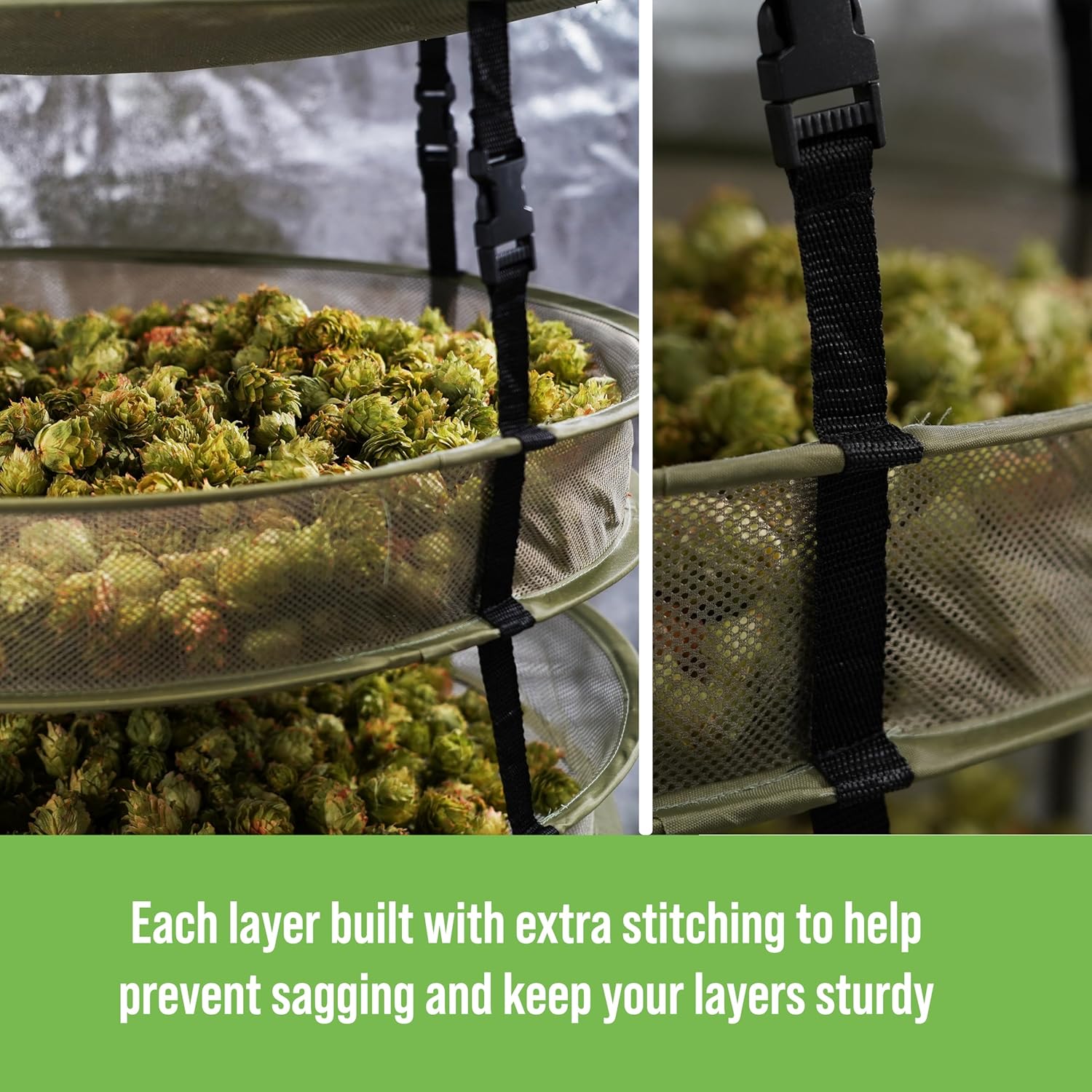 - Breathable Mesh - Durable lightweight mesh allows airflow across each level helping ensure even drying and preserving harvest quality