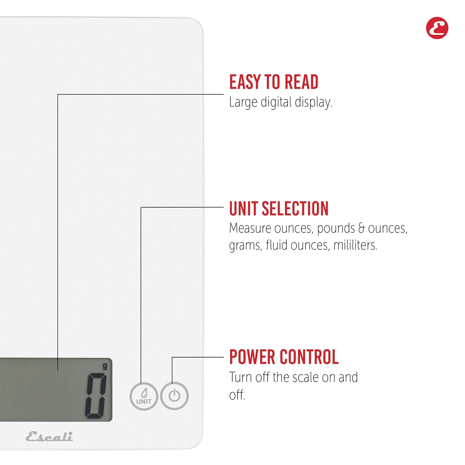 Escali Arti Digital Food Scale, Multi-Functional Kitchen Appliance, Precise Weight Measuring and Portion Control, Baking and Cooking Made Simple, Tempered Glass, Frost White