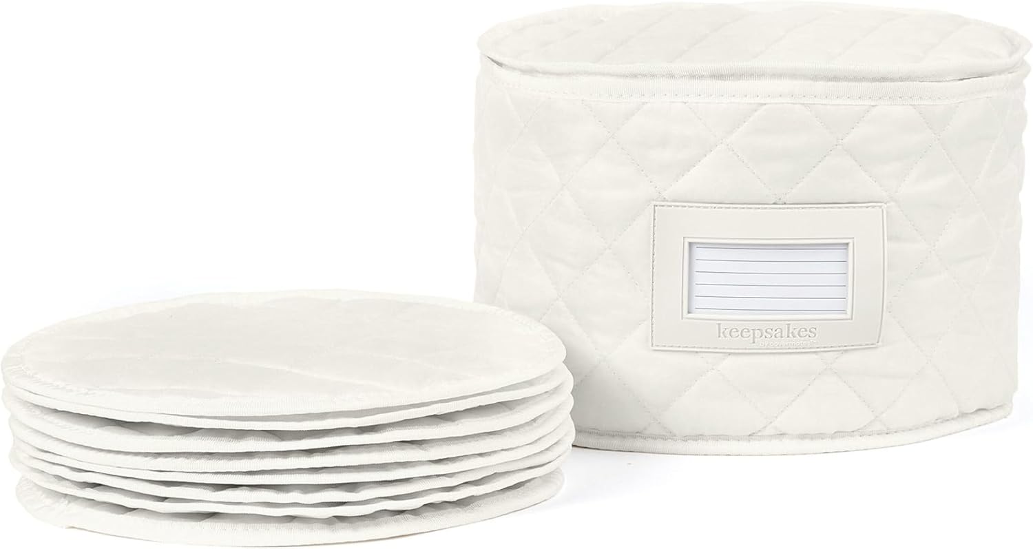 Covermates Keepsakes - Dish Storage - Padded Protection - ID Window - Stain Resistant - Machine Washable - China Storage, Cream