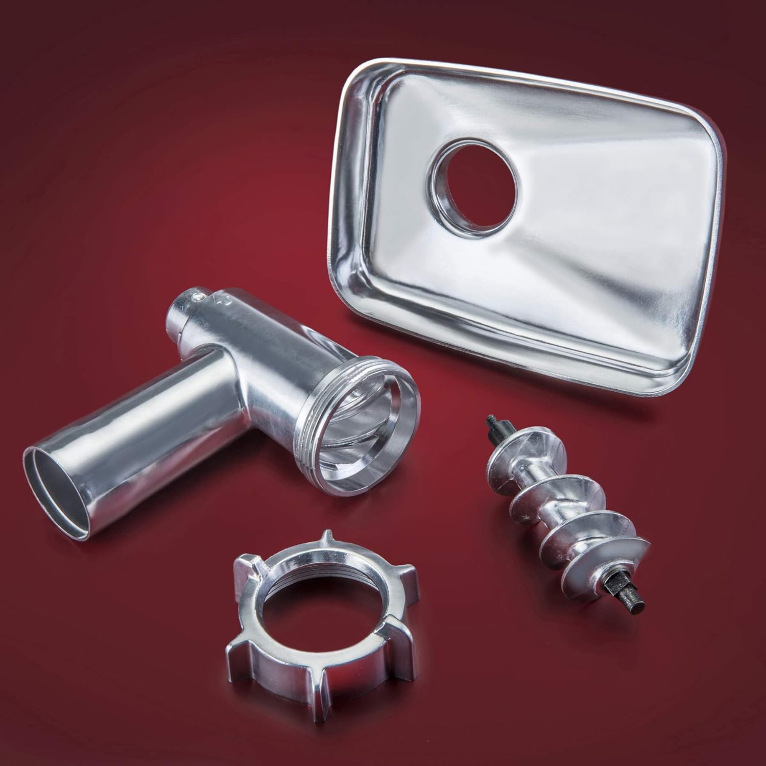 - This Magnum 1800W “Platinum Edition” Grinder also Includes: 1-Polished Aluminum Grinding Head and High Capacity Meat Tray, 3 - 304 Grade Stainless Steel Cutting Blades, 5 - Sizes of Grinding Plates, 1 - Sausage Stuffing Plate, 3 - Sizes of Sausage Stuffing Tubes (1/2", 5/8" & 3/4"), 1 - Kubbe/Kibbe Making Attachment & 1 - Easy to Use Palm Meat Pusher/Stuffer, a pair of Meat Claws & Burger-Slider Press.