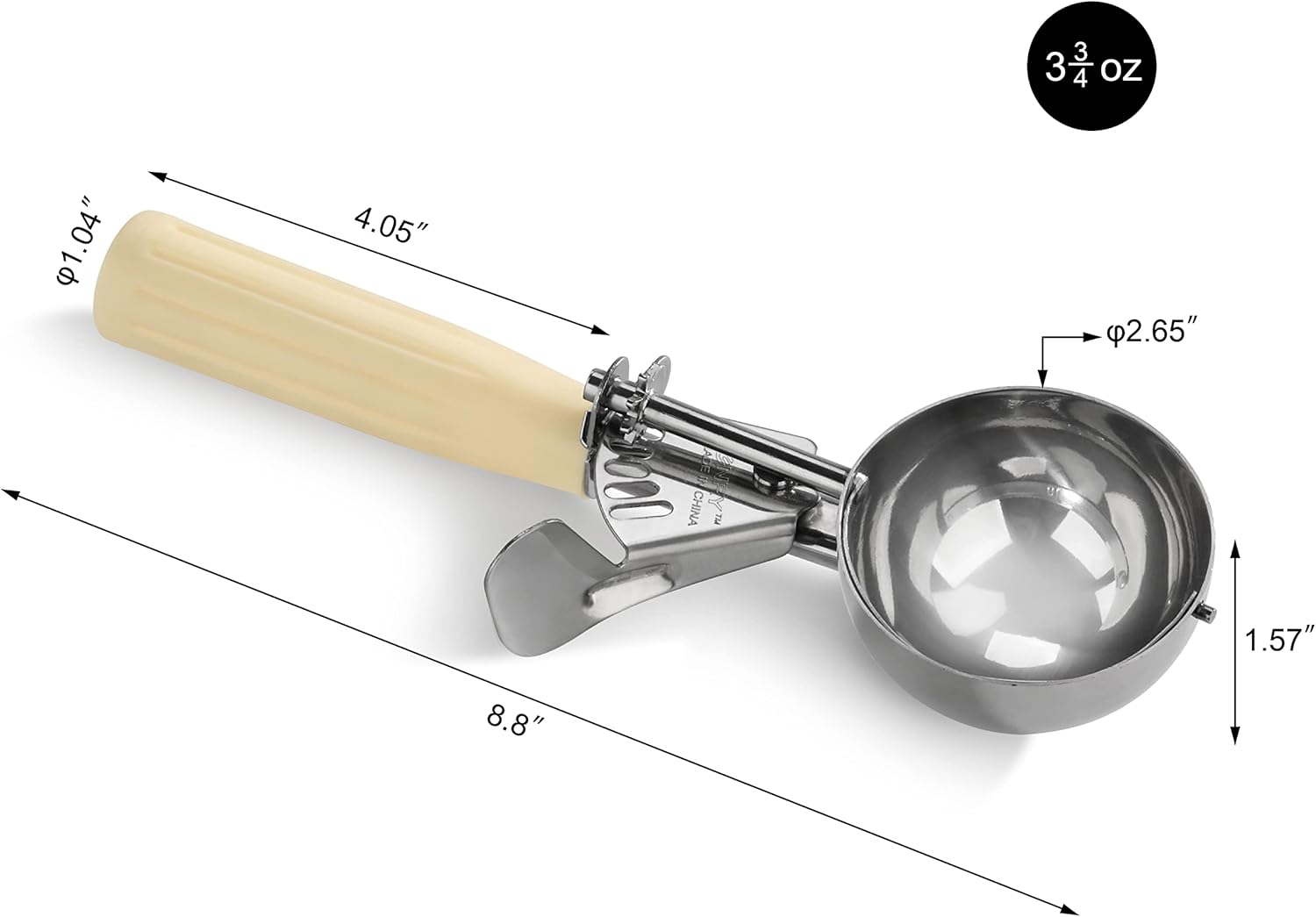 New Star Foodservice 34783 Commercial-Grade Thumb Press Food Disher/Ice Cream Scoop, 18/8 Stainless Steel, 3.75 oz, Size 10, Ivory