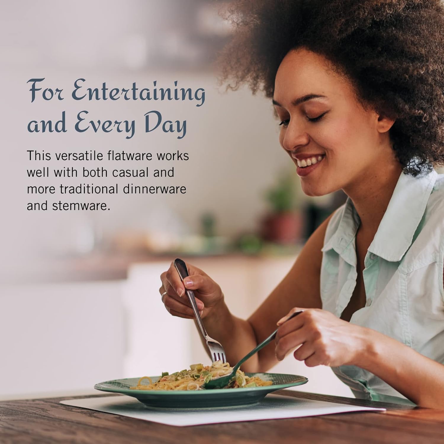 Mikasa Satin Loft 65-Piece Flatware Set for 12, 18/10 Stainless Steel Silverware with Forks, Knives, Spoons, and Serving Utensils, Durable and Elegant Design