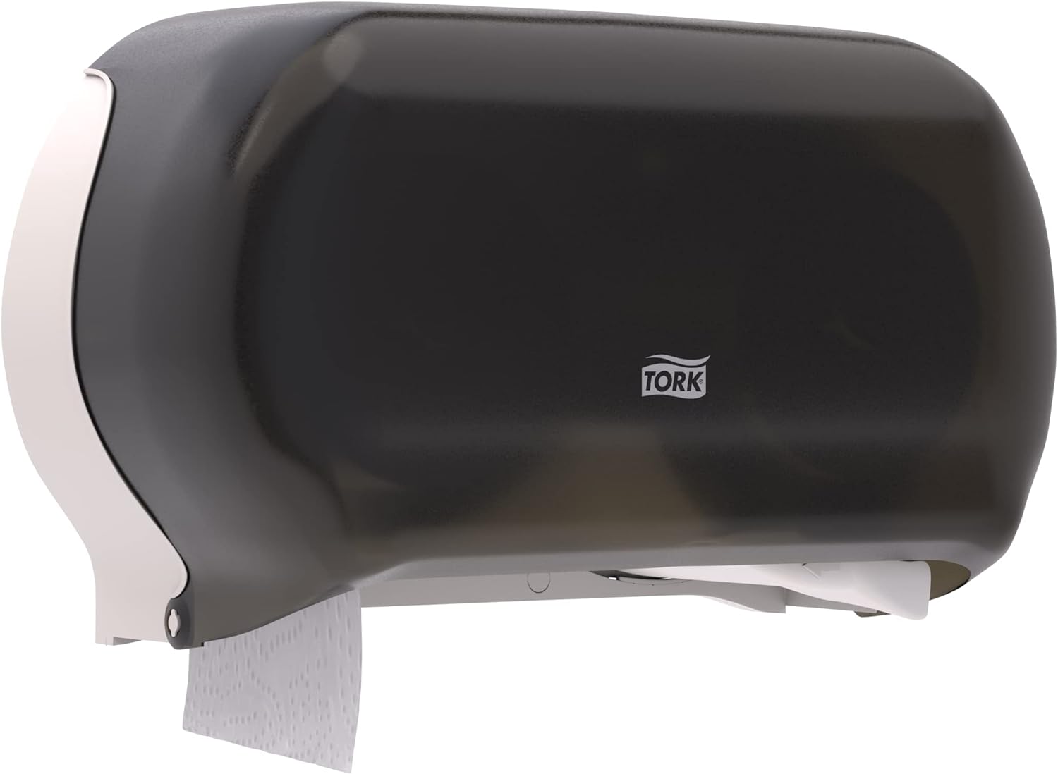 Tork Twin Jumbo Toilet Paper Roll Dispenser Smoke T22, Refill Indicator Window, 56TR