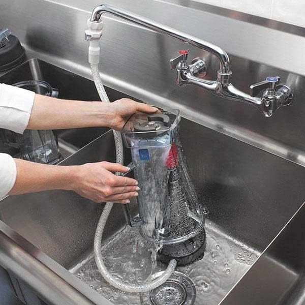 - Using cold water running from faucets with a minimum pressure of 25 PSI, this rinser emits a powerful spray that makes cleaning blenders quick and easy. When you're not pressing, the rinser won't spray.