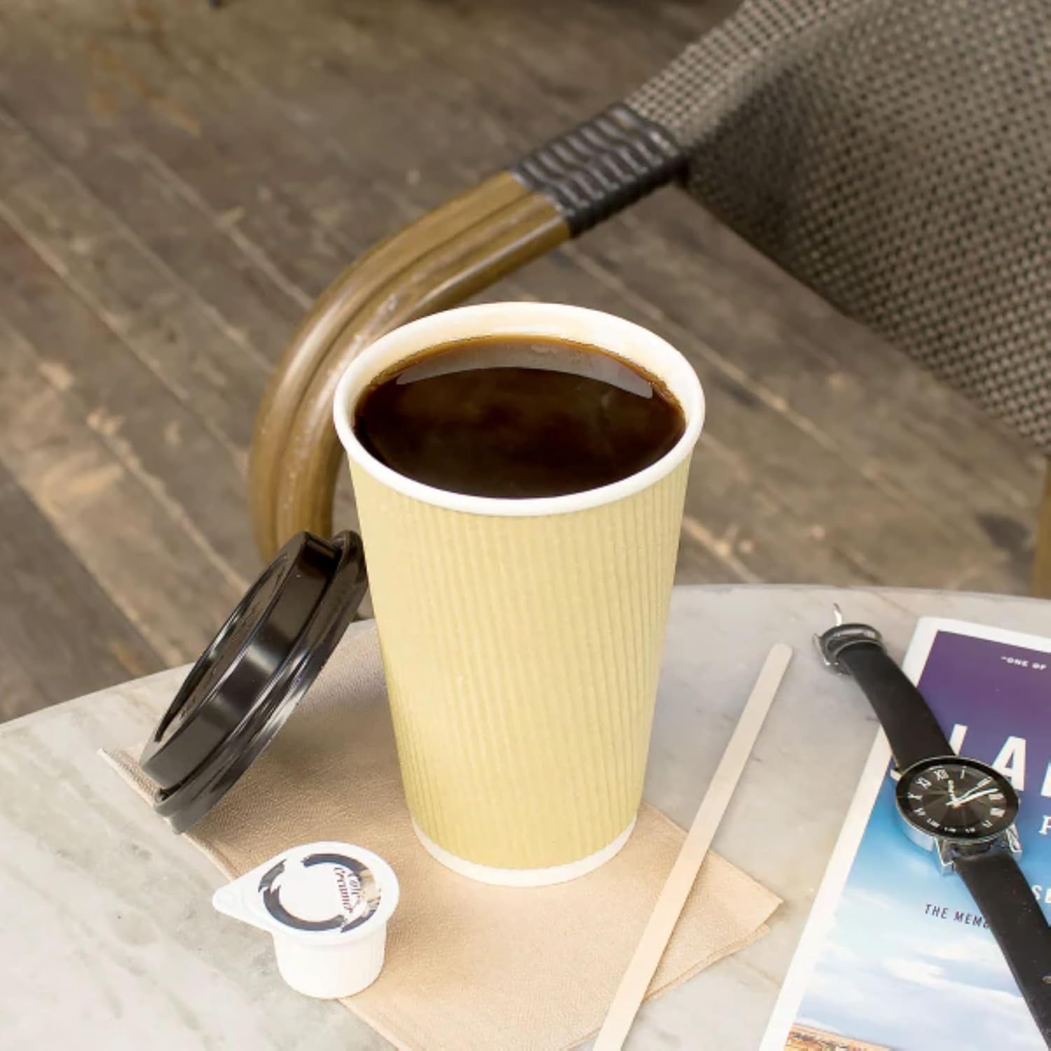 Karat 16oz Ripple Insulated Coffee Hot Cups [500 Count] Kraft Double Poly Lined Paper Hot Cup - Ideal for Hot Beverages, 90mm (C-KRC516)