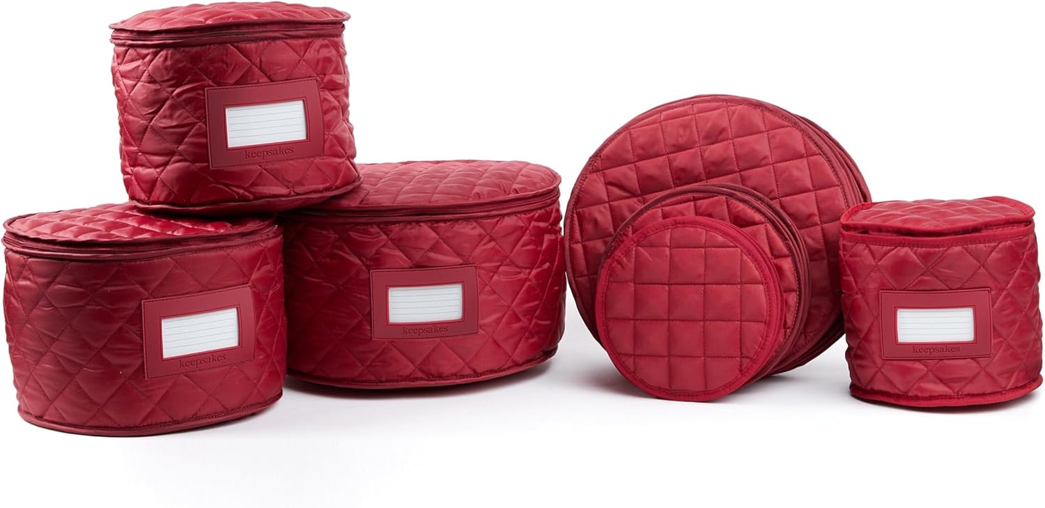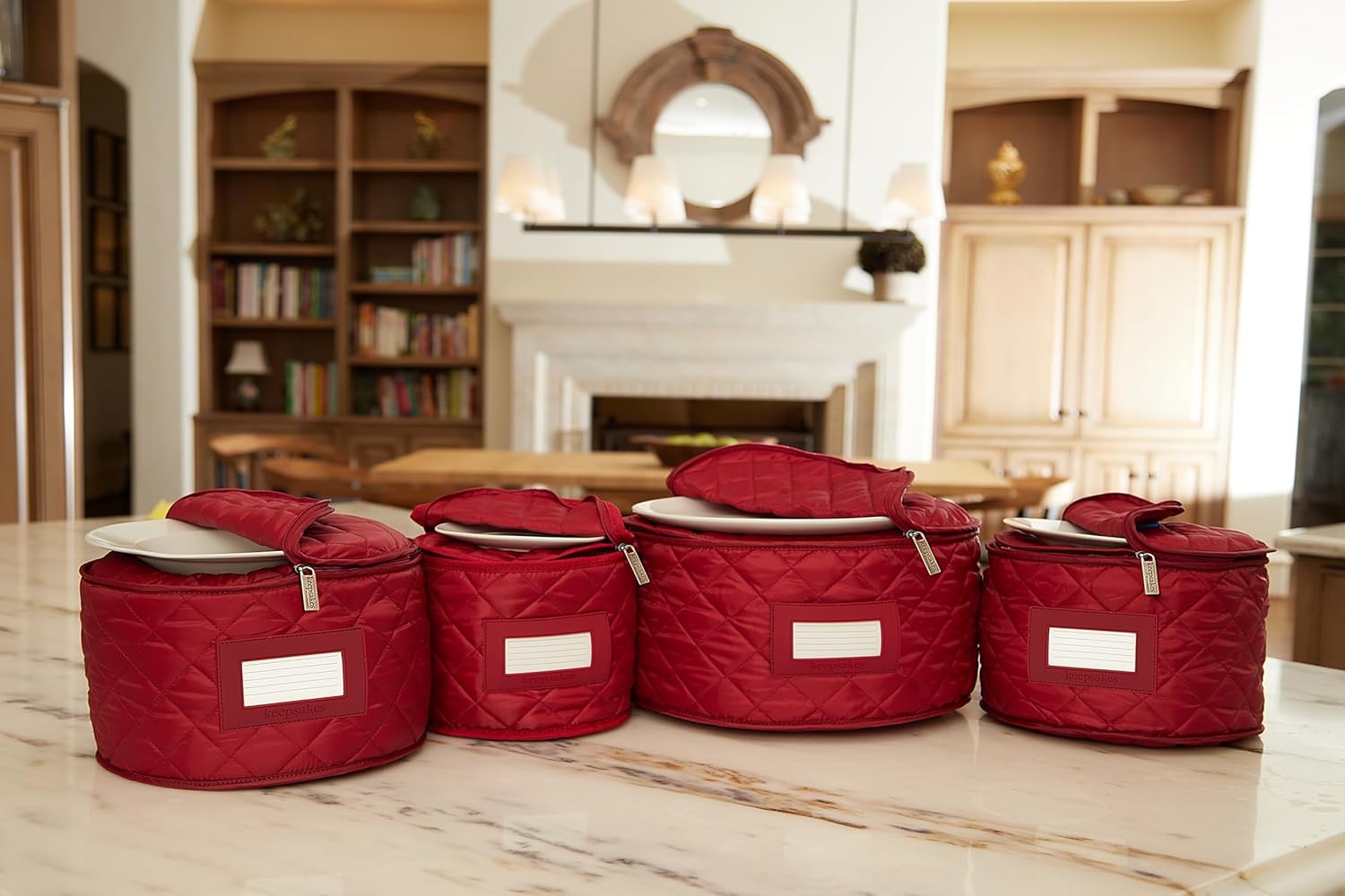 Covermates Keepsakes - Dish Storage Set - Padded Protection - ID Window - Stain Resistant - Machine Washable - China Storage, Red