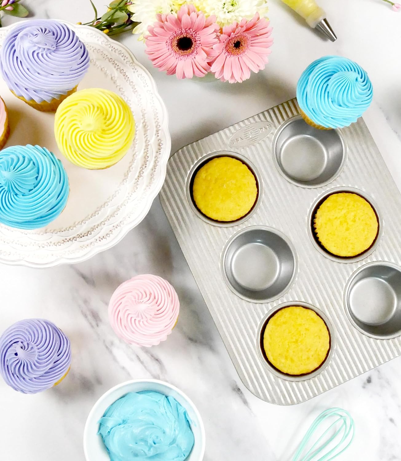 - USA Pan 6 cup Muffin Pan turns out 6 muffins or cupcakes and fits nicely in most standard size toaster ovens (please check measurements!)