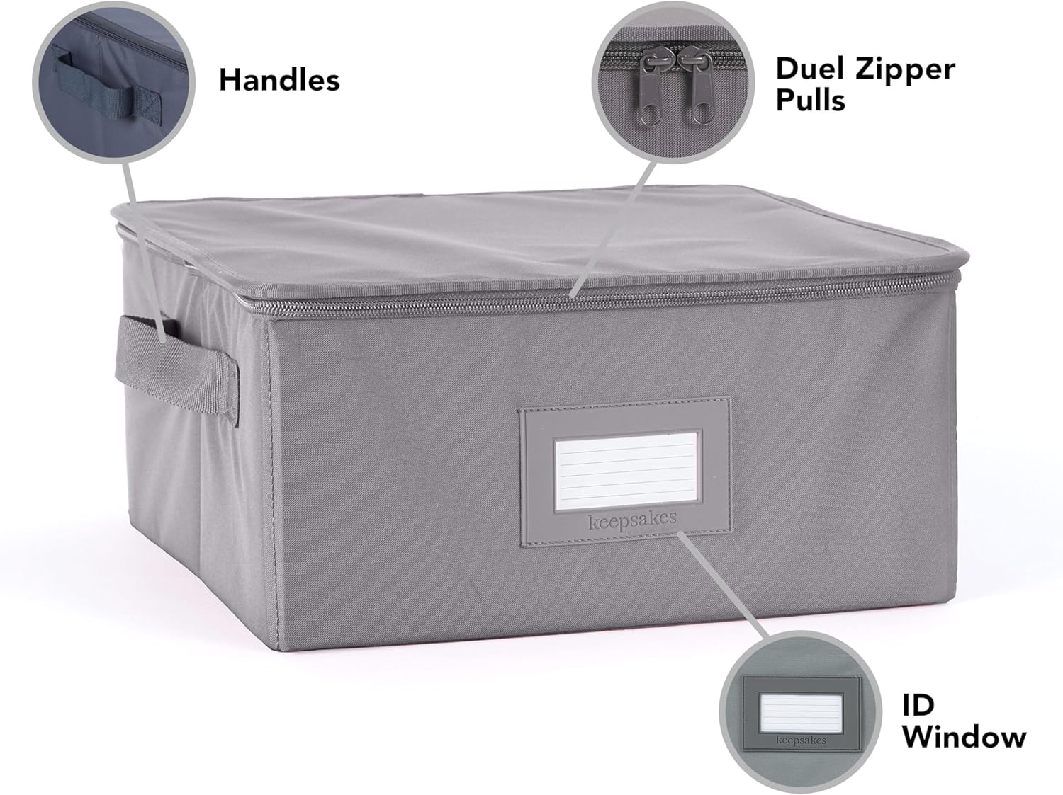 Covermates Keepsakes Dish Storage Box - Stackable, Reinforced Handles, China Storage, Graphite