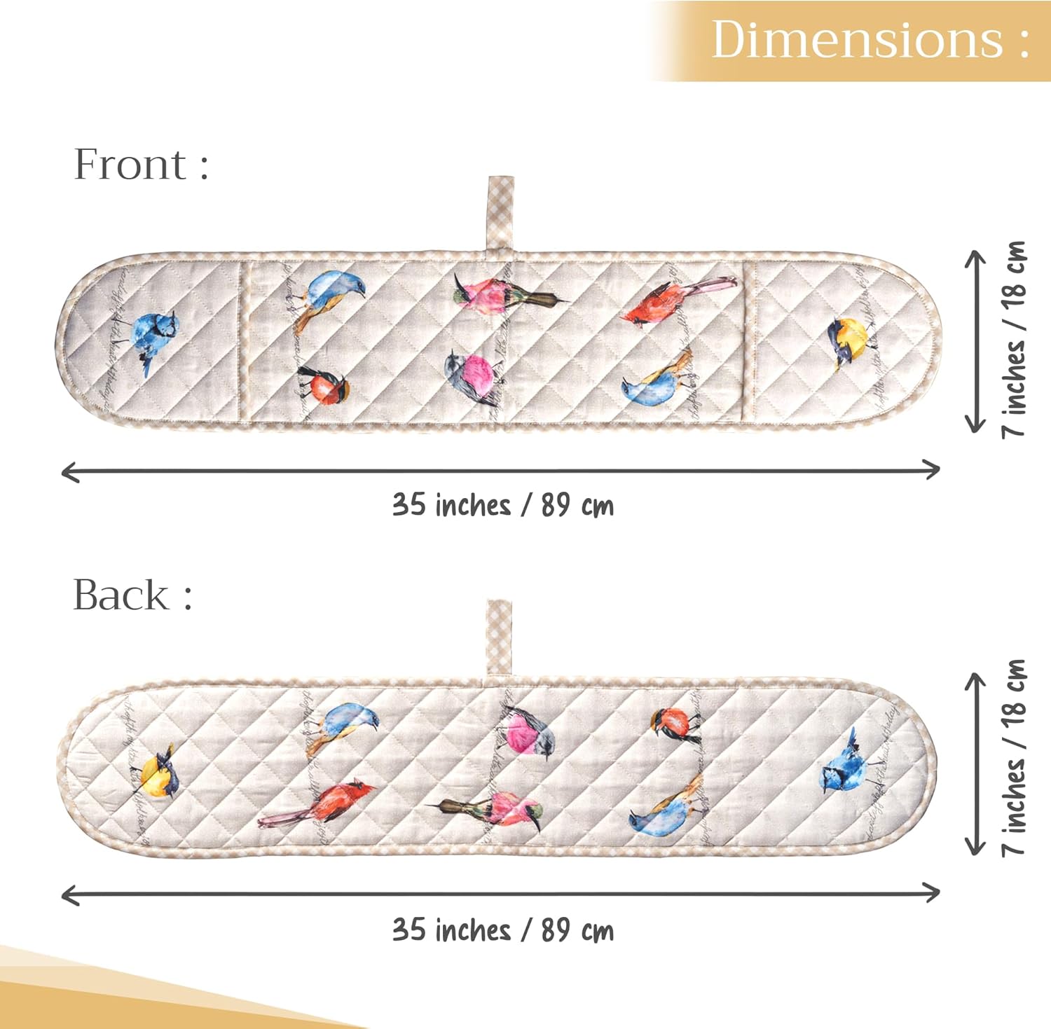 Maison d' Hermine Double Oven Mitts 100% Cotton 7"x35" Double Oven Mitt Heat Resistant BBQ Cooking Gloves with Loop, Baking, Grilling, Home, Kitchen, Handling Hot Pans Spring Summer (Birdies On Wire)