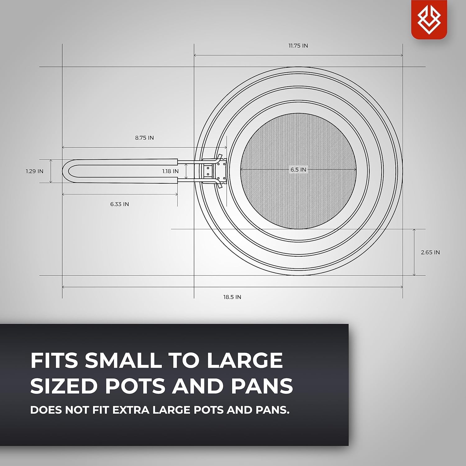 - LESS MESS = LESS STRESS! The stainless steel outer ring around a micro-mesh screen that’s tighter knit than a doomsday cult keeps grease and oil inside the pan. Other shields have looser knit mesh all the way to the edge.