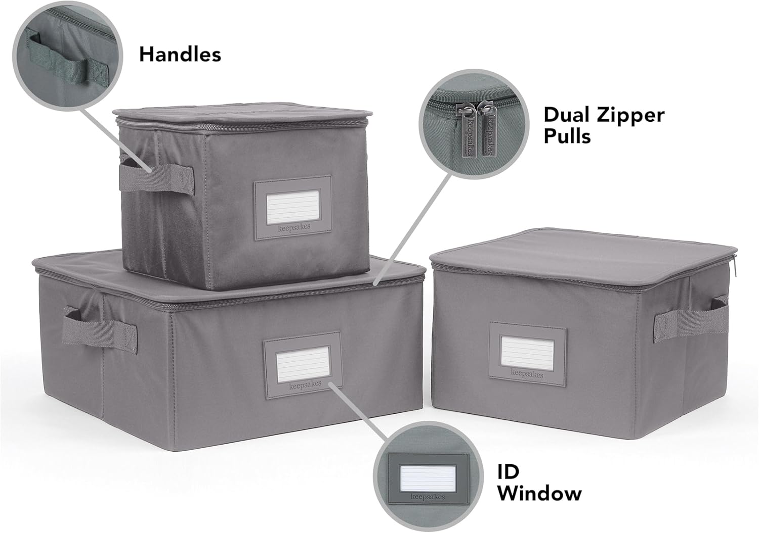 Covermates Keepsakes Dish Storage Box - Stackable, Reinforced Handles, China Storage, Graphite