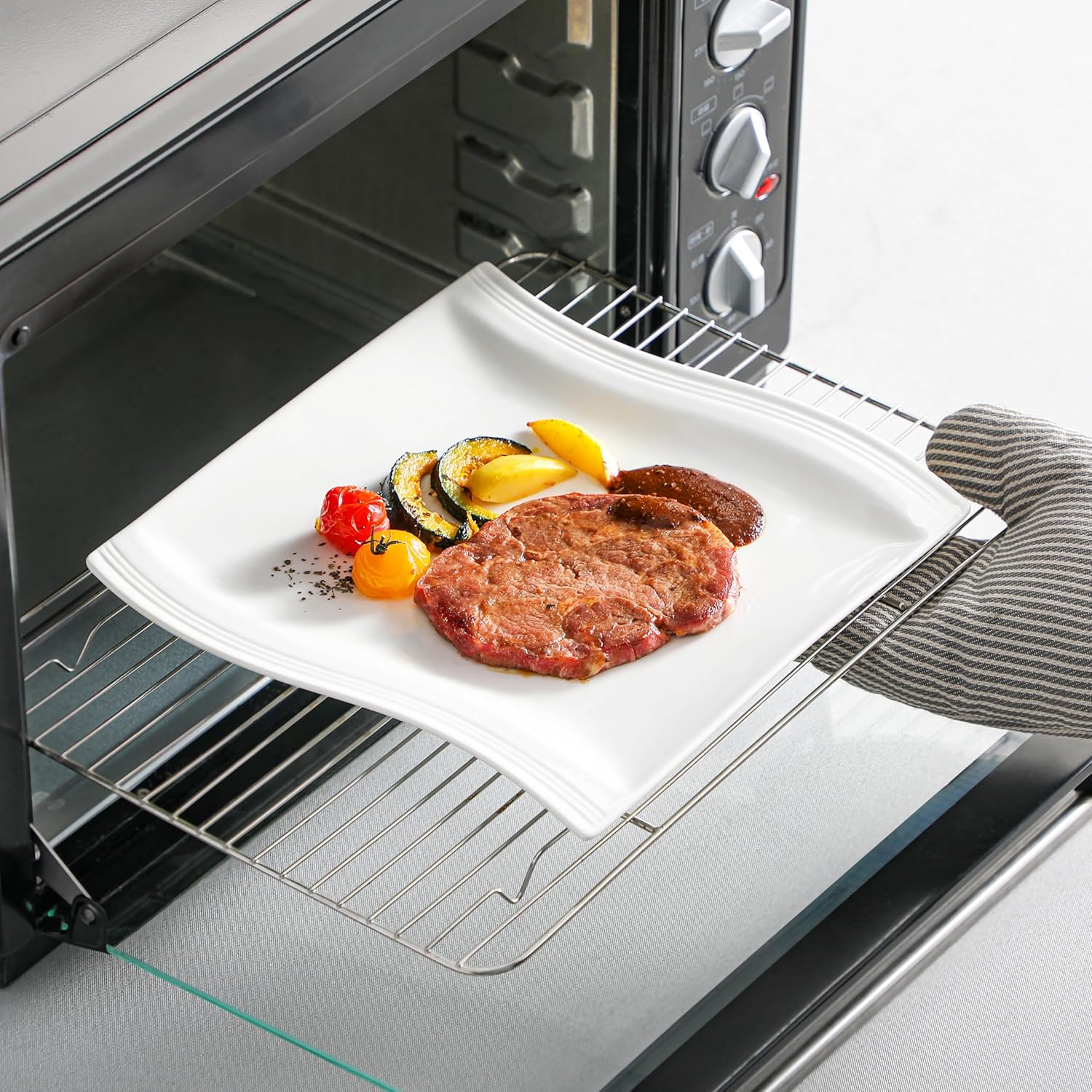 - Modern Aesthetic & Classic Elegance -- Featured with low-profile square wavy-shaped design, stylish and clean curved lines, each plates and bowls sets are distinct. The simplicity of white dinnerware sets exude an elegant and sophisticated aesthetic, making them suitable for both casual and formal dining settings.