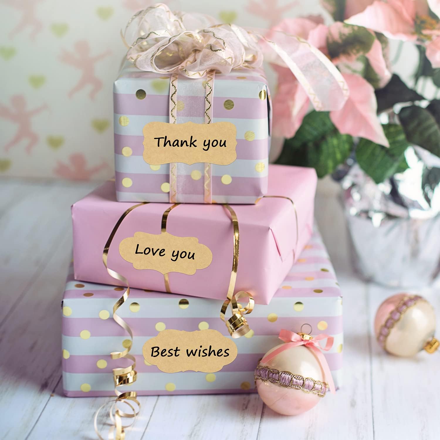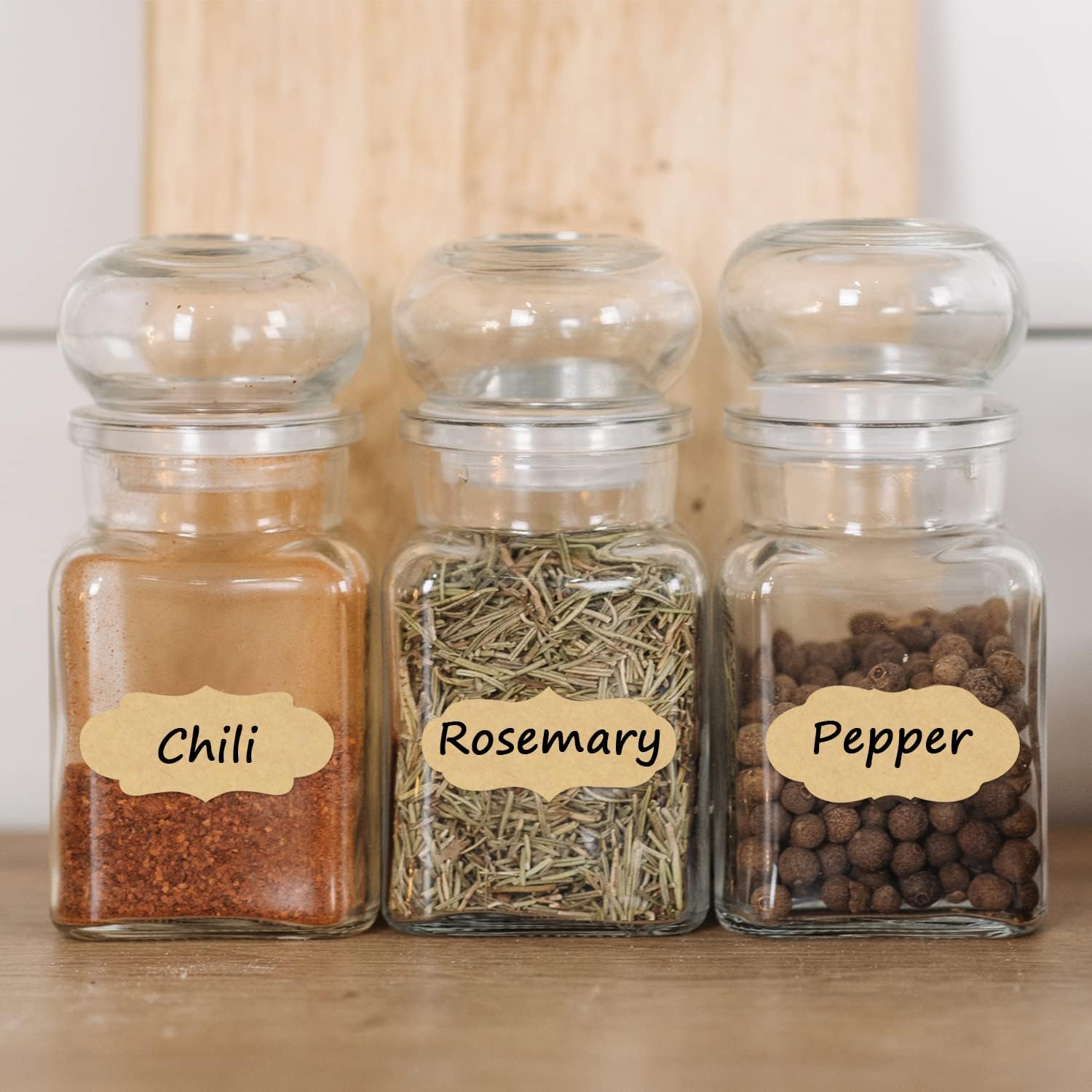 Wisdompro Fancy Shape Kraft Label Stickers, Self Adhesive Gift Tag Stickers Blank Writable Labels for Essential Oil Bottles, Jars, Food Containers (192 Pcs, Large)