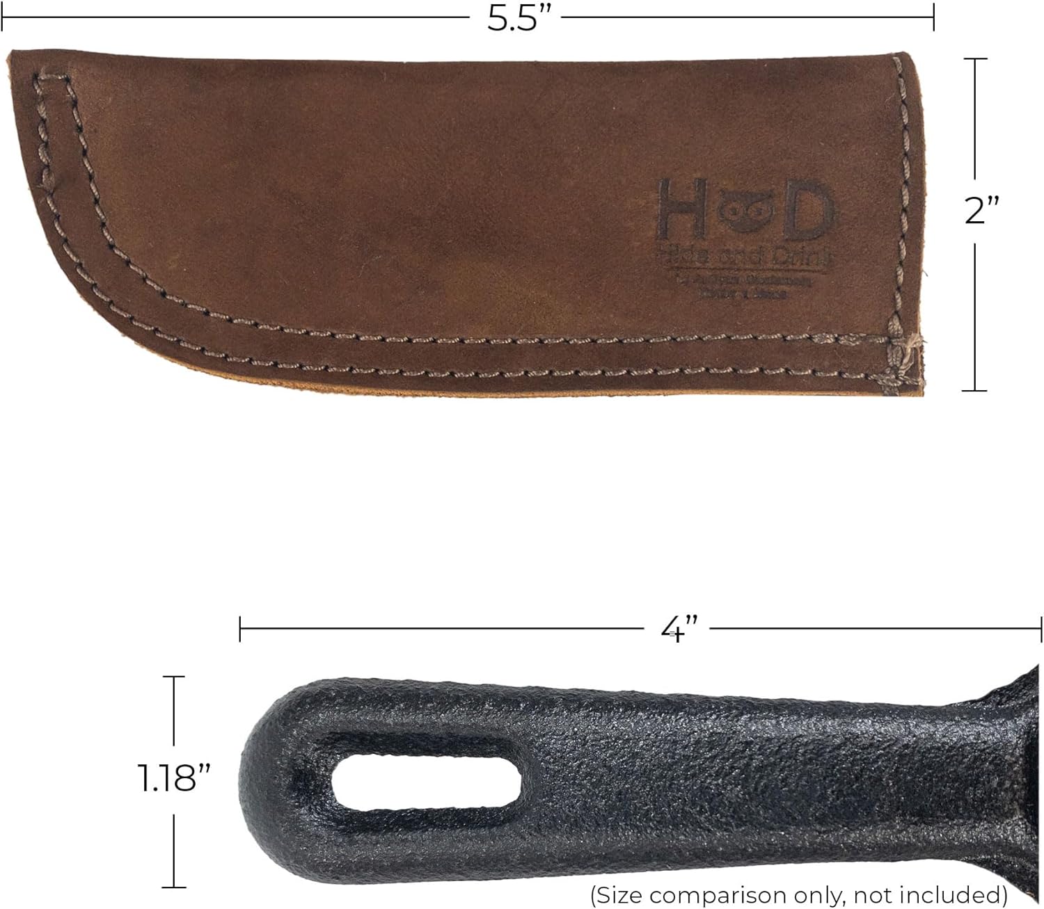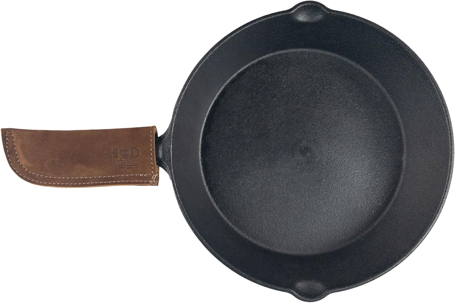 - DURABLE DOUBLE LEATHER LAYER OFFERS PROTECTION UP TO 450-DEGREES: The double layered leather provides excellent insulation to prevent any burns as you take the Skillet off the fire, giving you a protection against high temperatures. Note that these Rustic Leather Pan handles are designed for levels of heat-proofing, they are not fireproof – do not place in the oven.