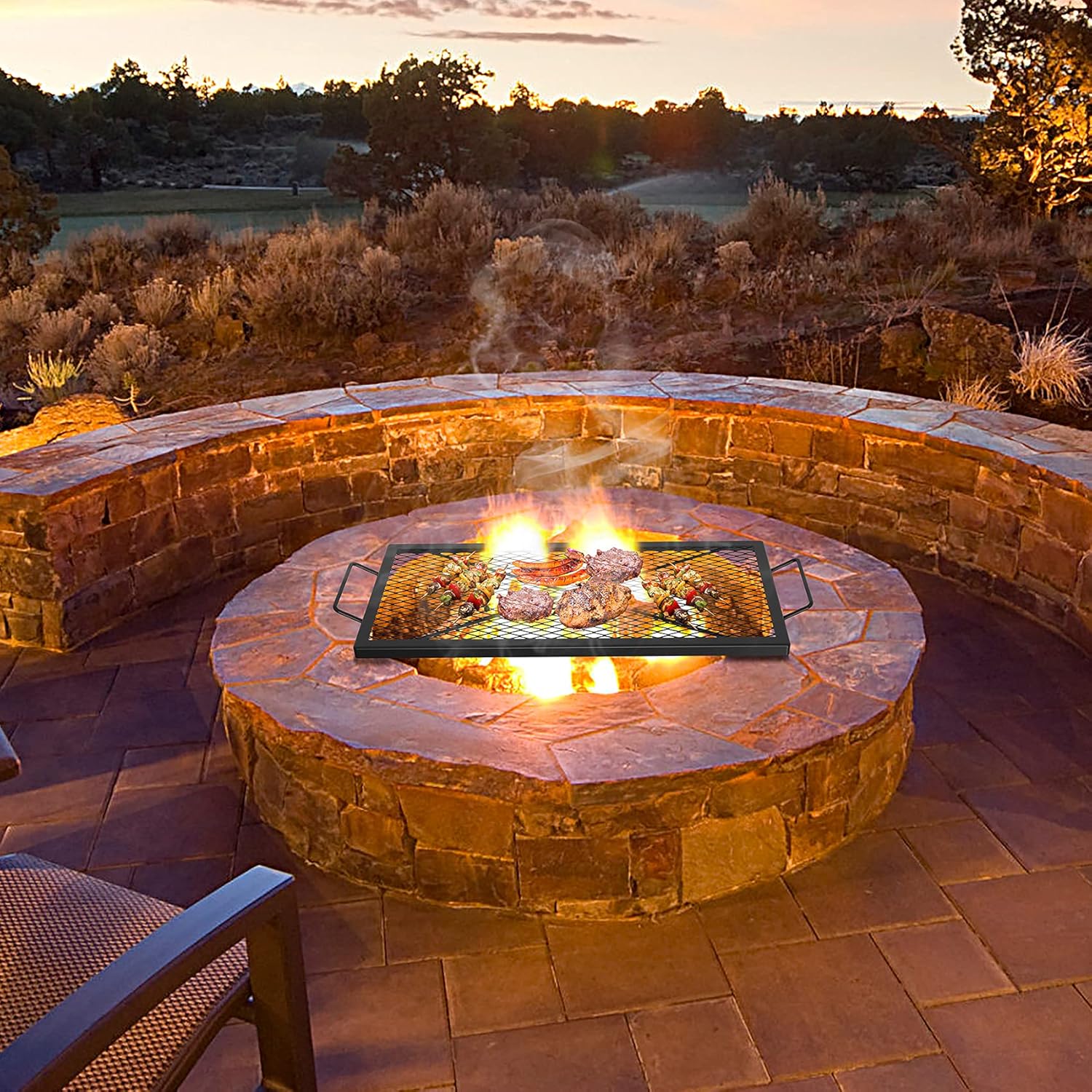 - Precision Mesh Structure: Engineered with a small diamond-shaped mesh pattern, the fire pit grill grate ensures that food stays securely in place without slipping through the openings, the "X-marks" style creates a delicious-looking sear on your meat and vegetables.