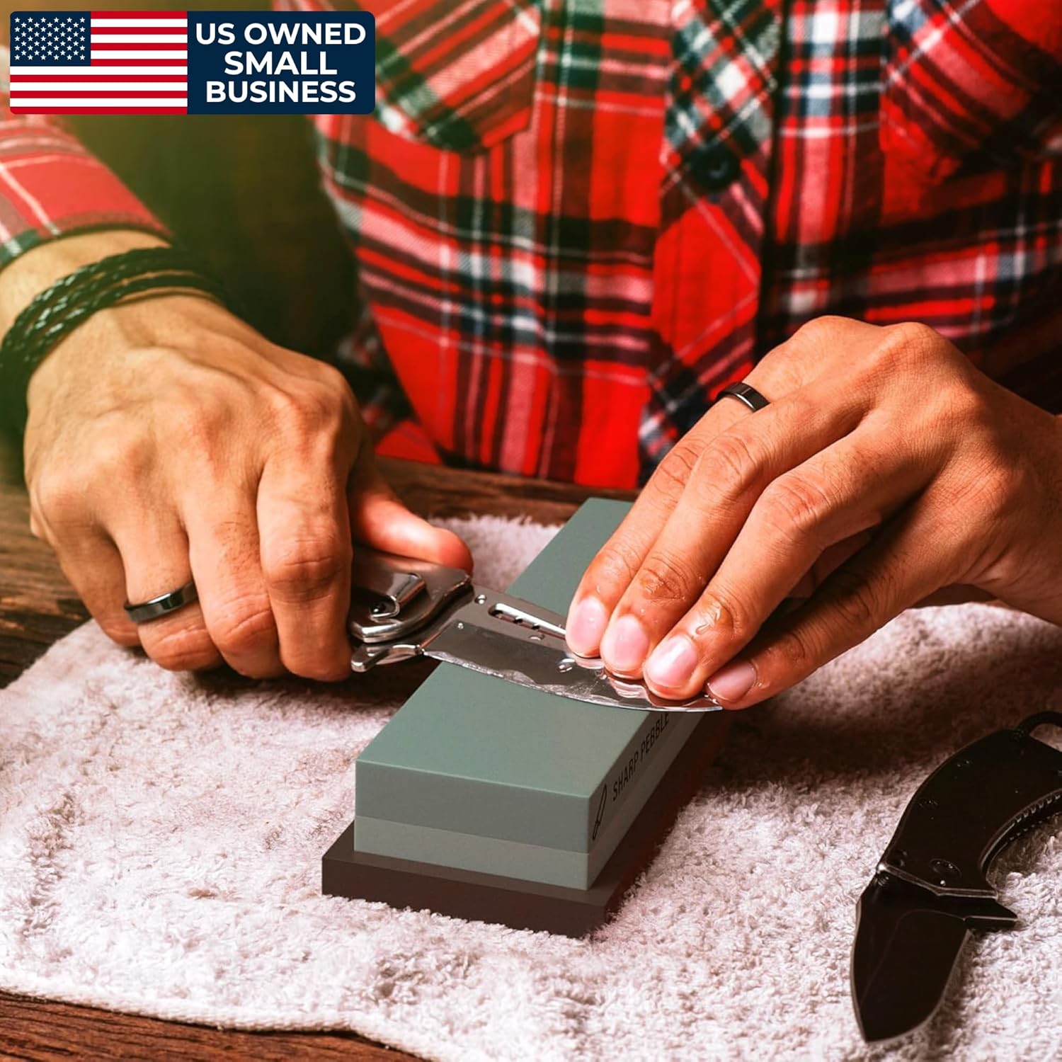 - Superior Bundle: 3 Must-Have Sharpening kit bundled in one affordable set for you, whetstone (grit 400/1000) with Non-Slip Rubber Base + Flattening Stone + Knife Sharpening stone Guide(Ebook) are perfect for making very dull knives scary sharp