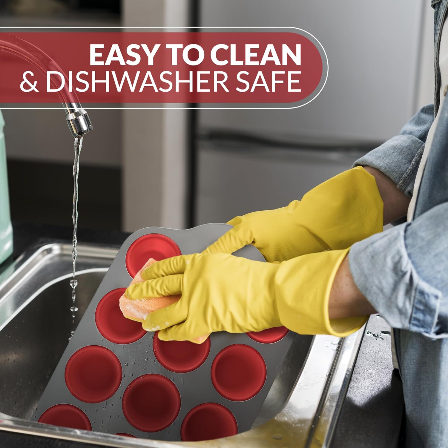 - Ergonomic Design for Effortless Baking: Designed with wide, comfortable handles, this pan gives you a firm grip and easy maneuverability—perfect for both beginner bakers and seasoned pros. The non-stick silicone cups are oven-safe, freezer-friendly, and dishwasher-safe, making baking and cleanup a total breeze.