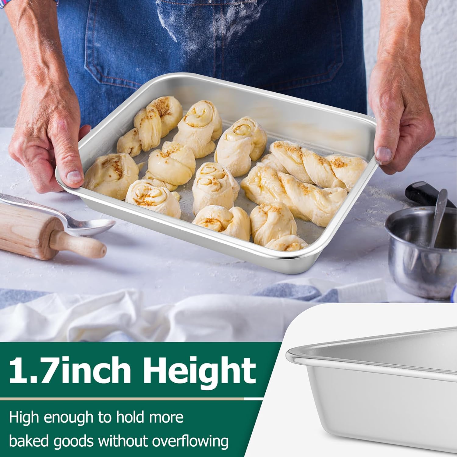 TeamFar Lasagna Pan, 10.6 x 8.3 x 1.7inch Stainless Steel Rectangular Cake Brownie Pan Casserole Baking Dish, Compact for Toaster Oven, Non Toxic & Healthy, Brushed Finish & Easy Clean-Dishwasher Safe