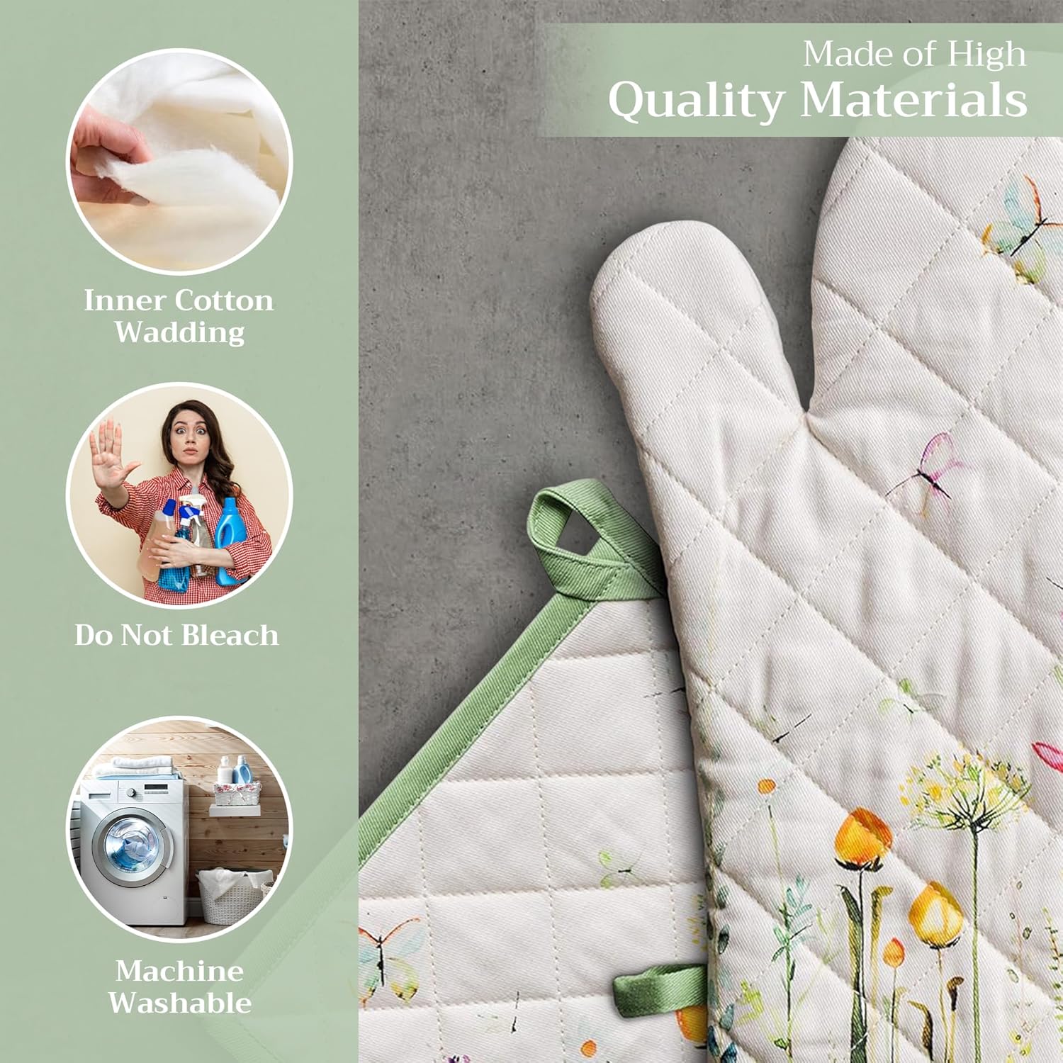 - Premium Quality: Crafted from quilted 100% cotton, this heat resistant oven mitt and pot holder set offers comfort, flexibility, and protection from hot cookware. Ideal cotton oven mitts for daily kitchen use and cooking safety