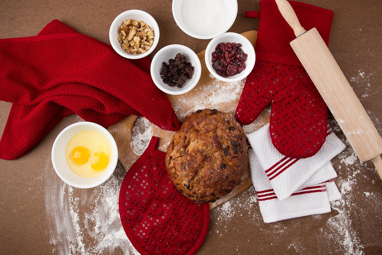 Sticky Toffee Oven Mitt and Pot Holder Set of 3 – Red Non-Slip Silicone Kitchen Hot Pads and Mitts, 100% Cotton Shell, Oeko-Tex Cotton
