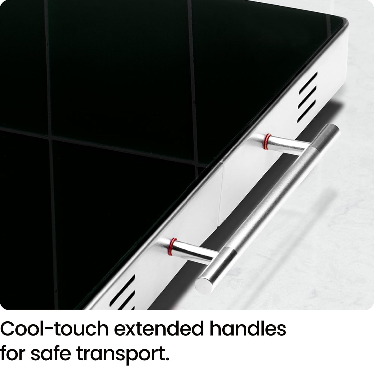 - SLEEK GLASS TOP: Sleek space saving design with black tempered glass top and stainless steel accents looks great on any table or buffet. Revolutionary glass plate design makes cleaning a breeze.