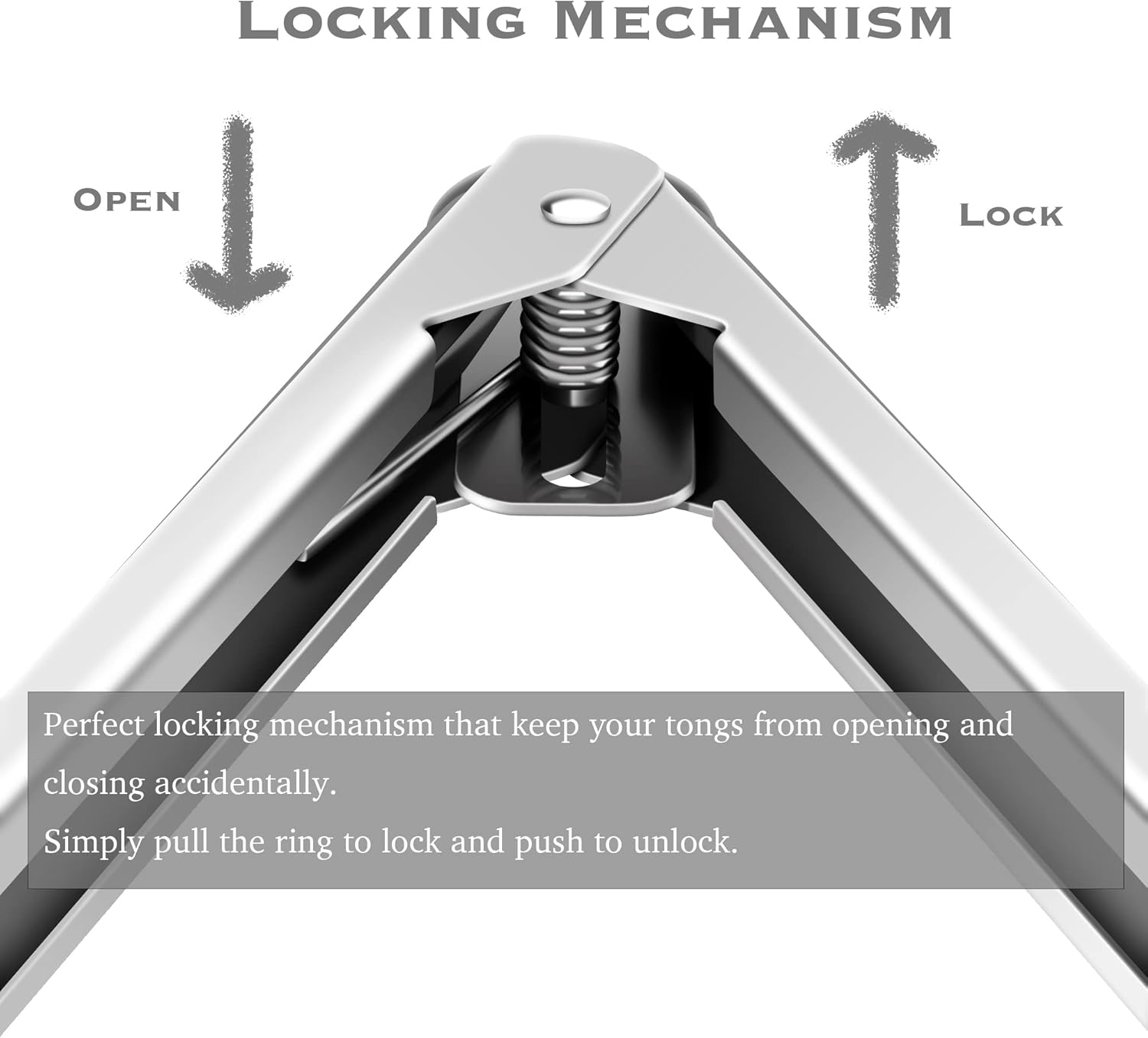 2 Pack Black Kitchen Tongs, Premium Silicone BPA Free Non-Stick Stainless Steel BBQ Cooking Grilling Locking Food Tongs, 9-Inch & 12-Inch