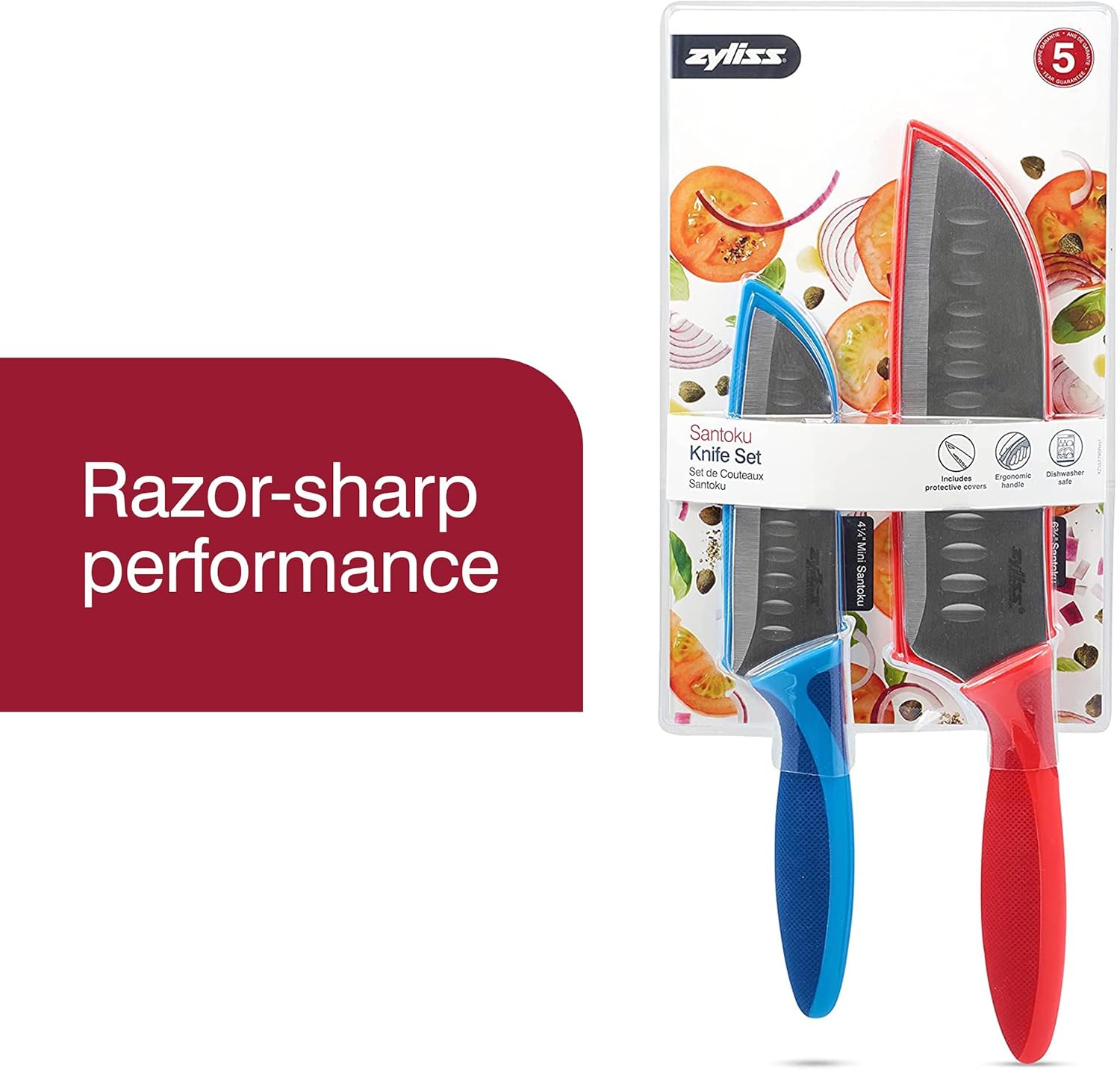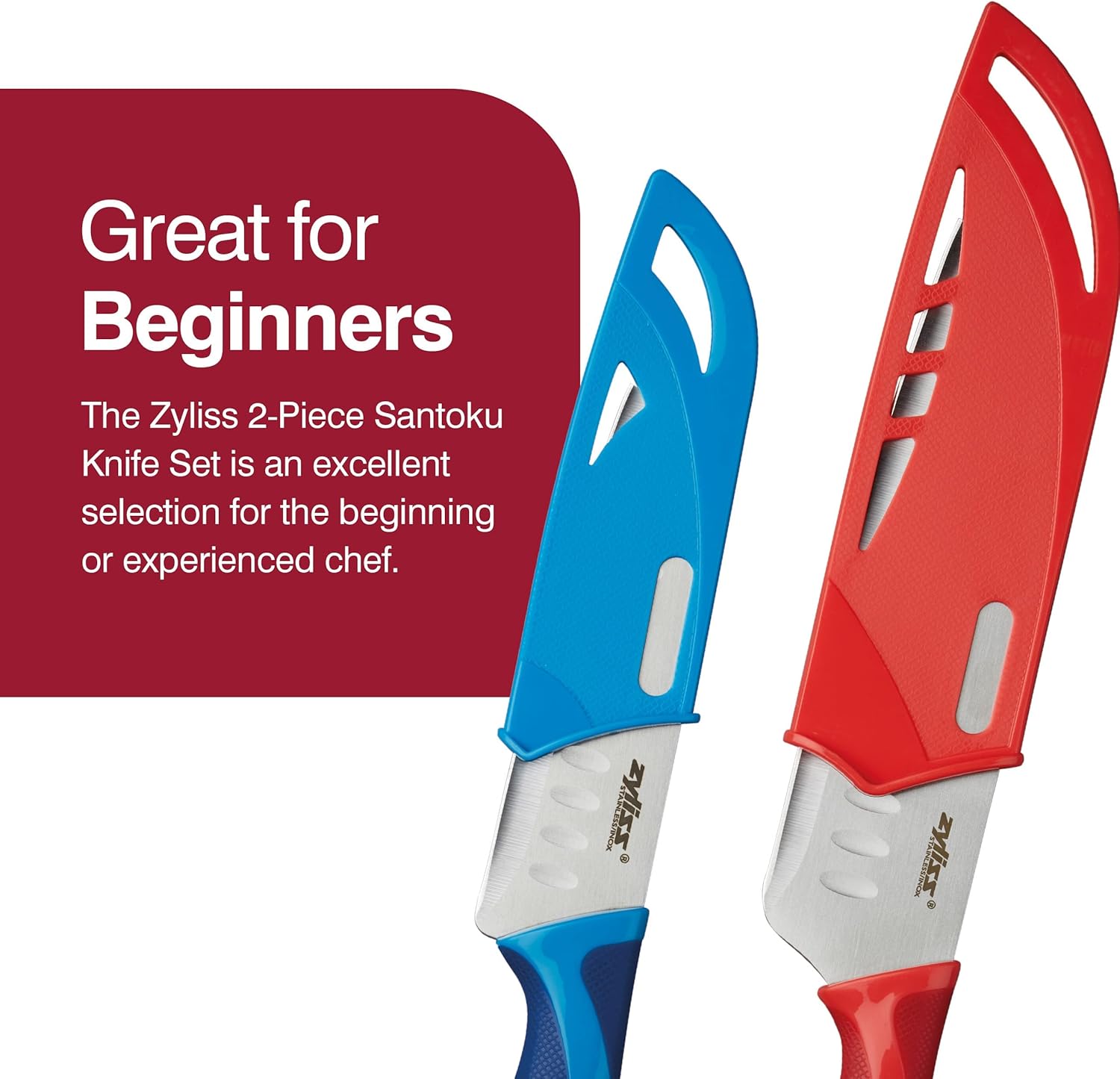 ZYLISS 2 Piece Santoku Knife Set with Sheath Covers, Stainless Steel