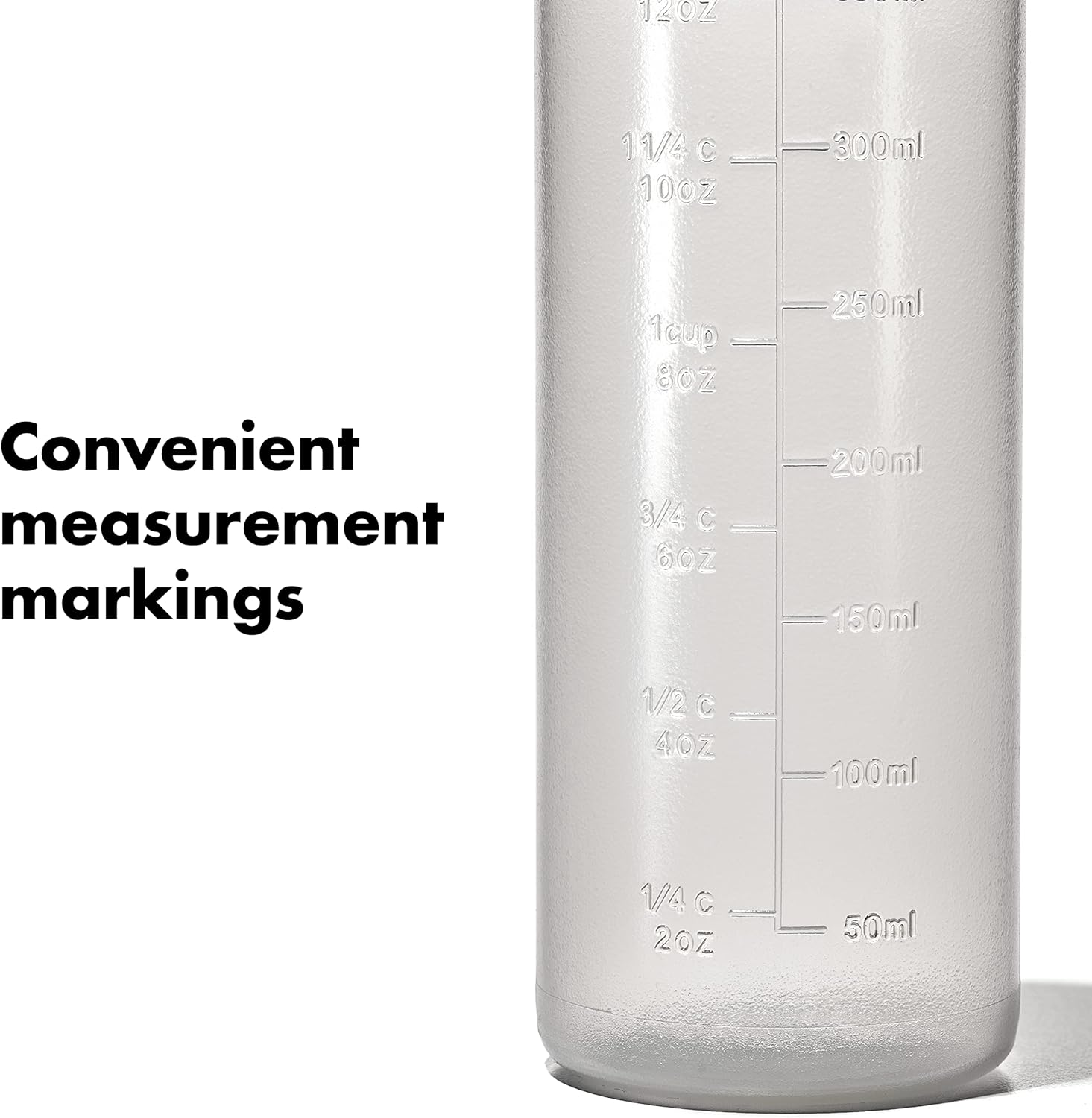 - Bottles feature convenient Measurement markings in cups, oz. and ml