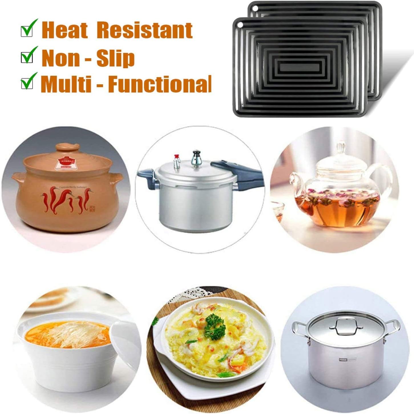- ☑️【Size】9" X 11.5‘’, for any style pans or pots. And the thickness is 6mm. more safety to protect your hands form any hot things.Whether you want to match it to your kitchen decor or your personality, our multipurpose trivet comes in many fun, vivid shades of color. Each package includes a set of 2.