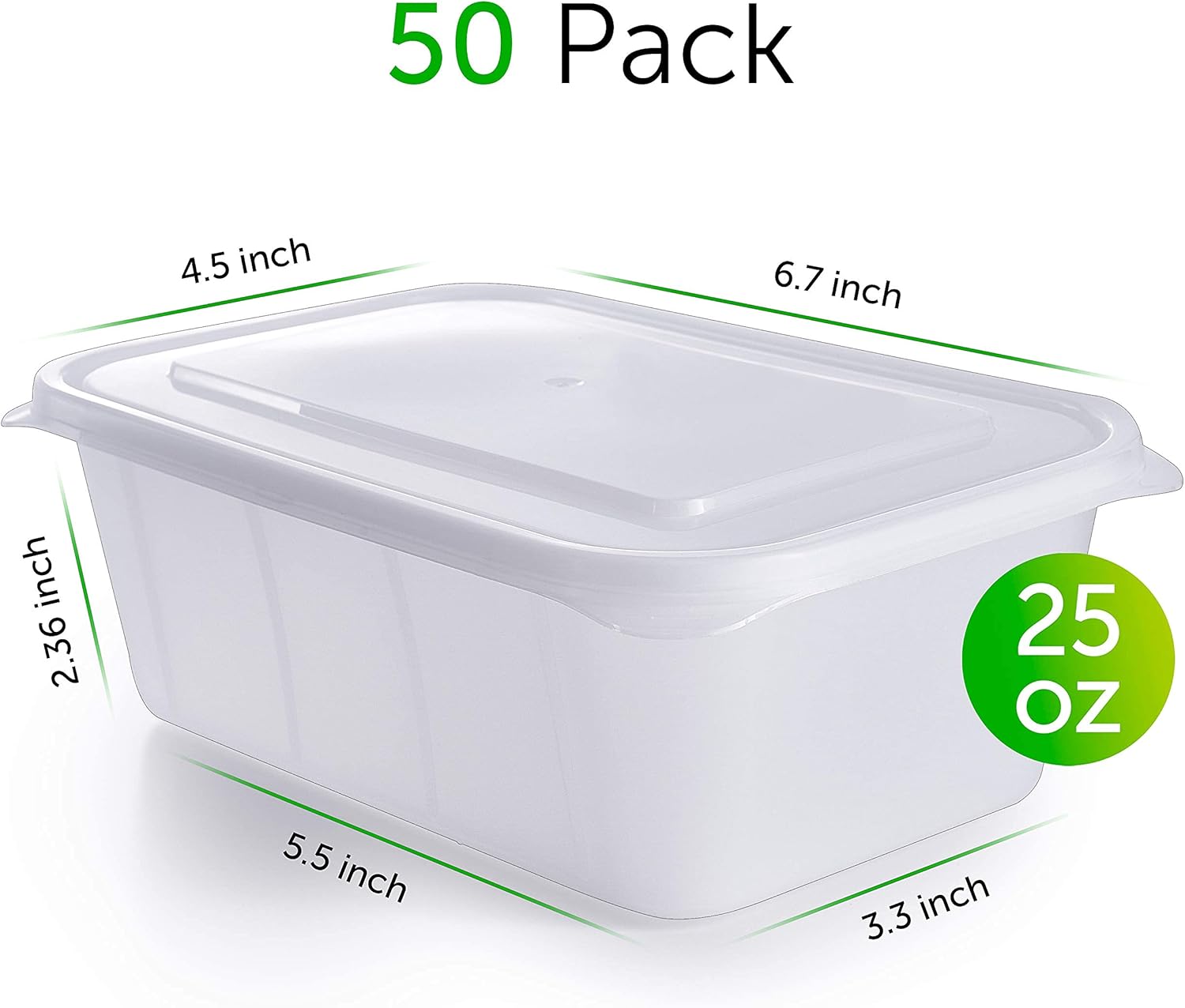 - Included Components : 50 Easy to open clear lids, 50 x 25 oz Meal Prep containers