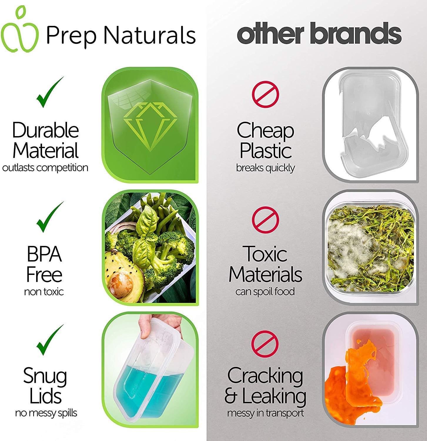 - Save Time & Money – PrepNaturals' new meal prep containers are perfect for people who are looking for an easy way to save money and time. Their premium look and ease of use encourages healthy eating and cooking your meals at home.