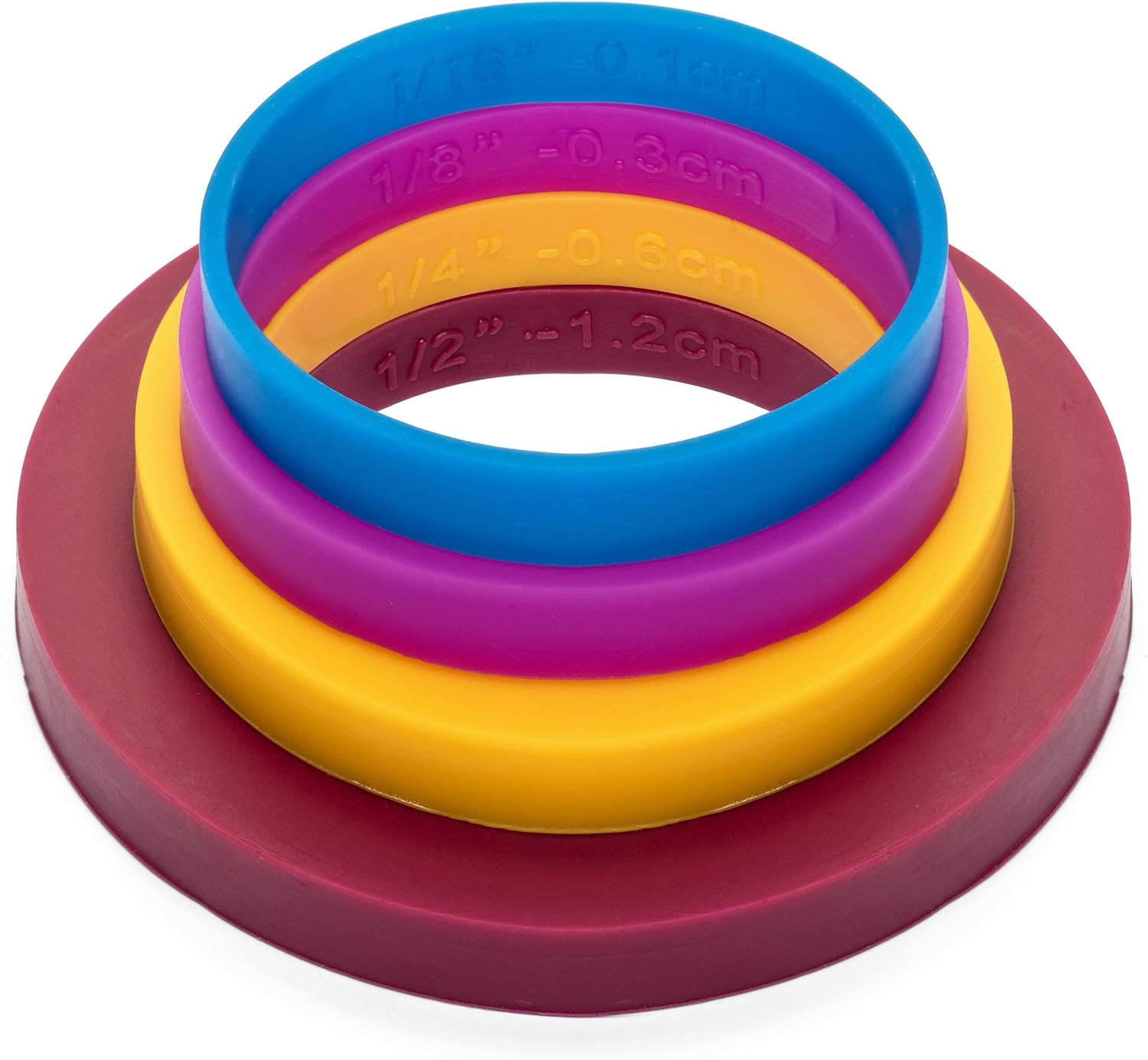 GreenOlive Rolling Pin Guide Ring Spacer Bands (8 Piece Set) Multicolored Flexible Silicone Slip On Baking Accessories Fit 1 3/4” to 2” Wide Dough Rollers