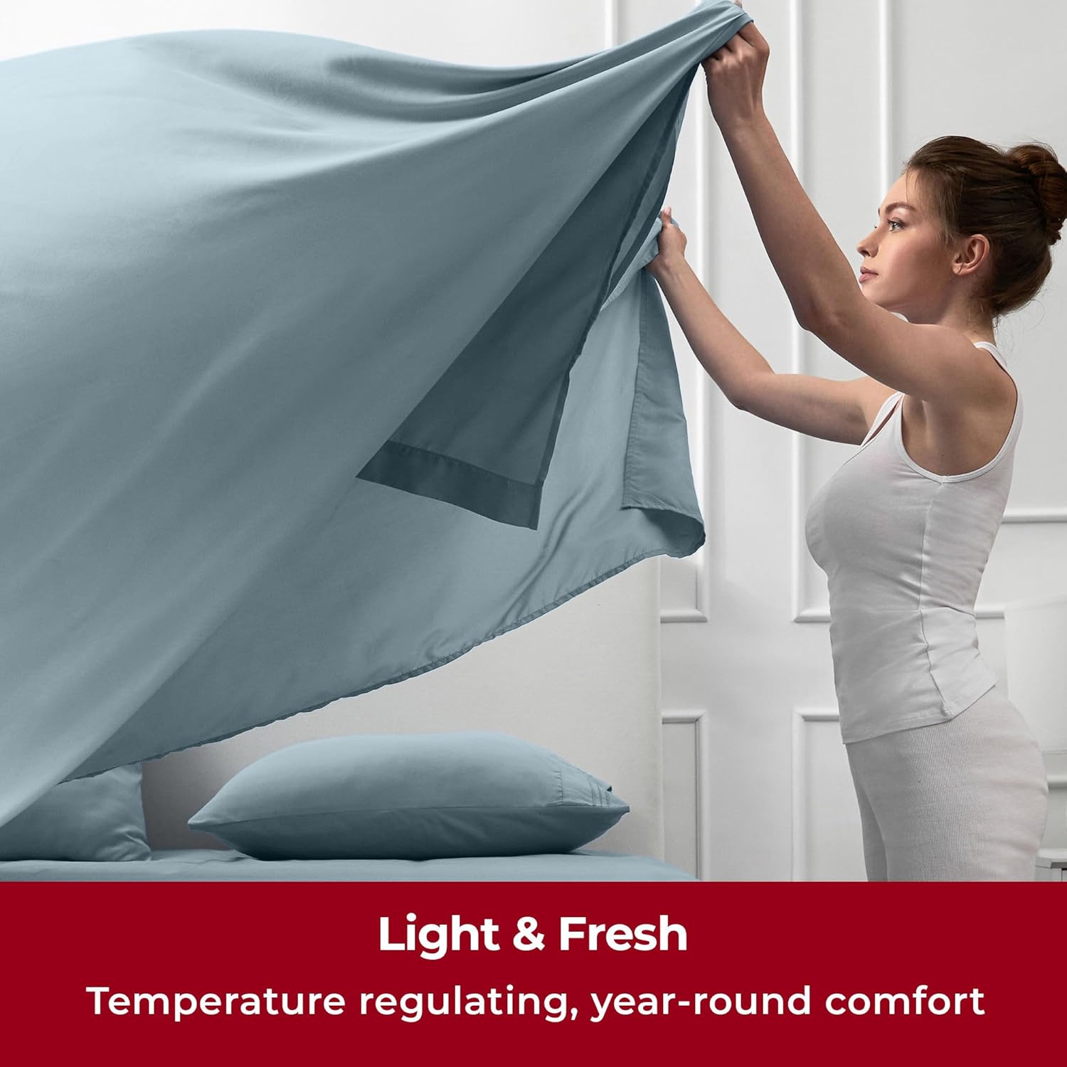 - Lightweight Luxury for Year-Round Comfort - Designed to be airy and ultra-light, our sheets offer effortless comfort in every season. Their thin, breathable construction enhances airflow, wicks moisture, and dries quickly. Despite their lightweight feel, these sheets are exceptionally strong and more durable than cotton, resisting stains, tears, and wear from frequent washing. Perfect for busy households with kids or pets.