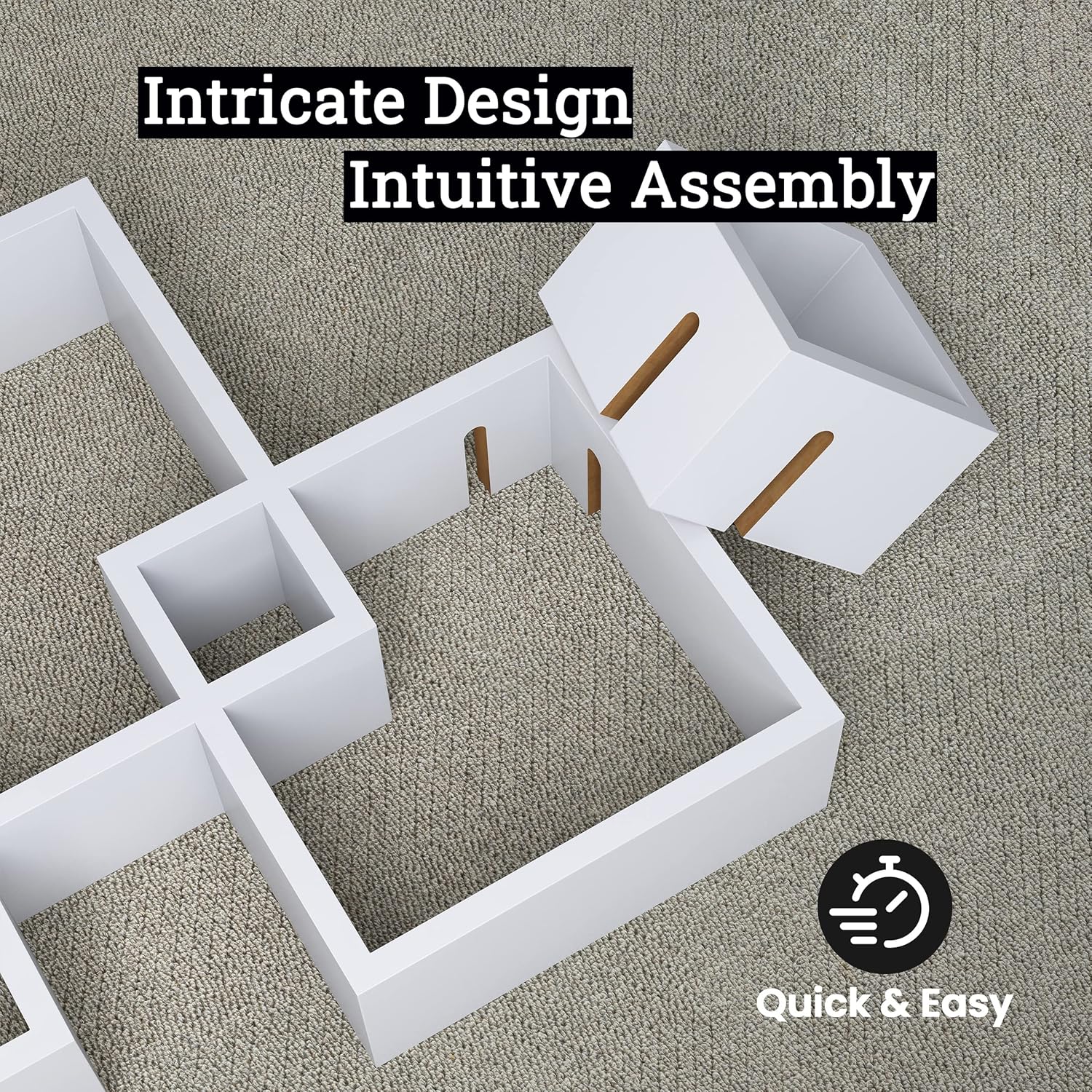 - DURABLE - The 4 cube intersecting wall mount floating shelves are lightweight yet sturdy. They are made of durable MDF laminate.