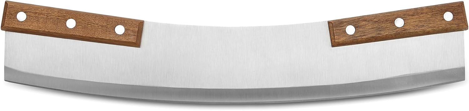 - DURABLE DESIGN: This pizza rocker comes with a beautiful acacia wood handle with a blade made in the artisan craftsmen style of knife makers of years ago. Plus, it comes with a bonus clear polycarbonate edge protector as well.
