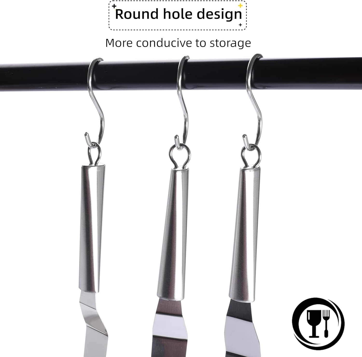 - The ergonomic metal handle with hole is lightweight and feel very comfortable to grip in your hand. The hole make these metal spatulas easy to hang and storage.