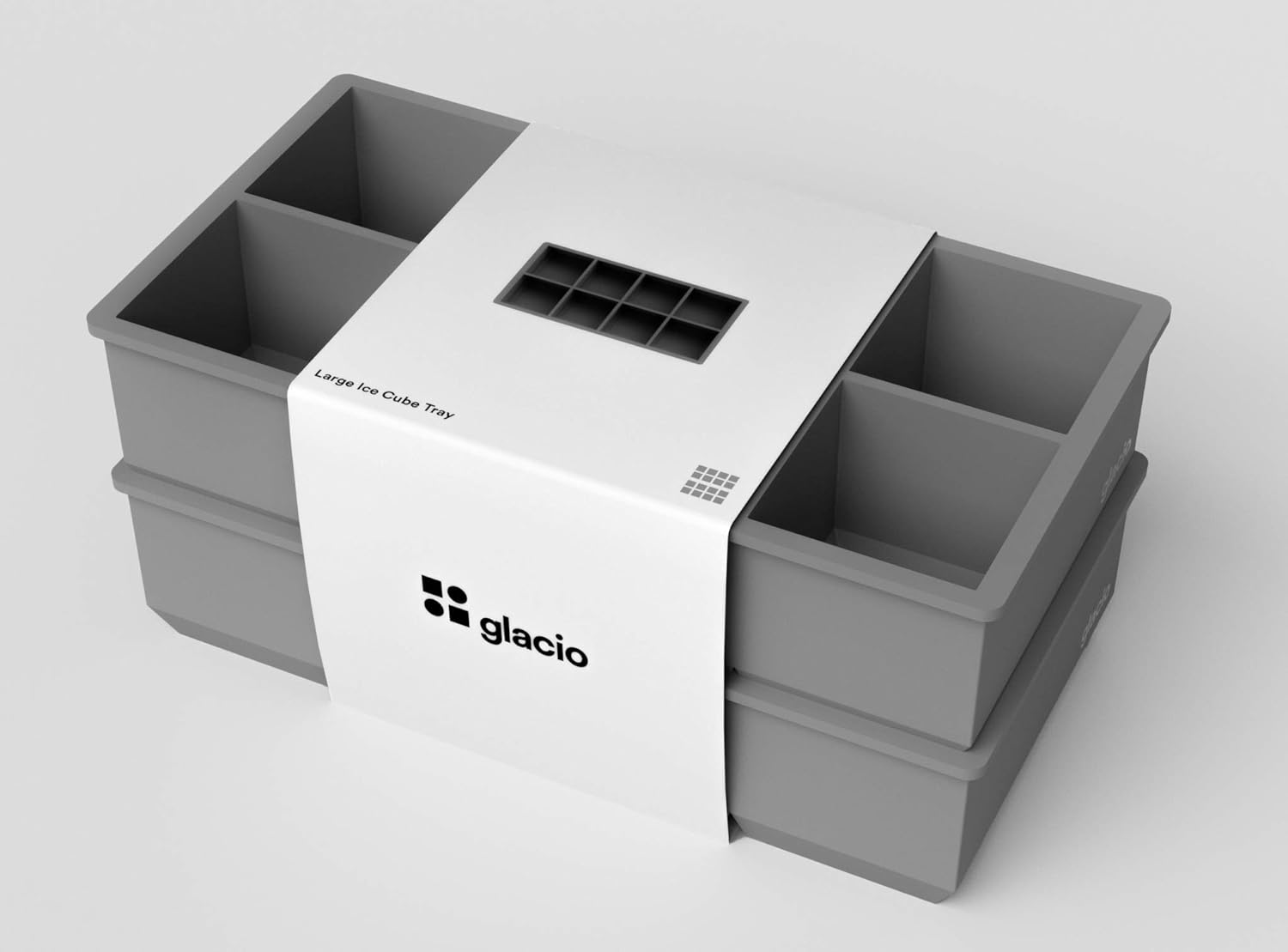 glacio Ice Cube Molds โ 2-Pack Silicone Trays for 8 Large Square Cubes โ Slow-Melt Ice for Whiskey, Cocktails, Coffee & More