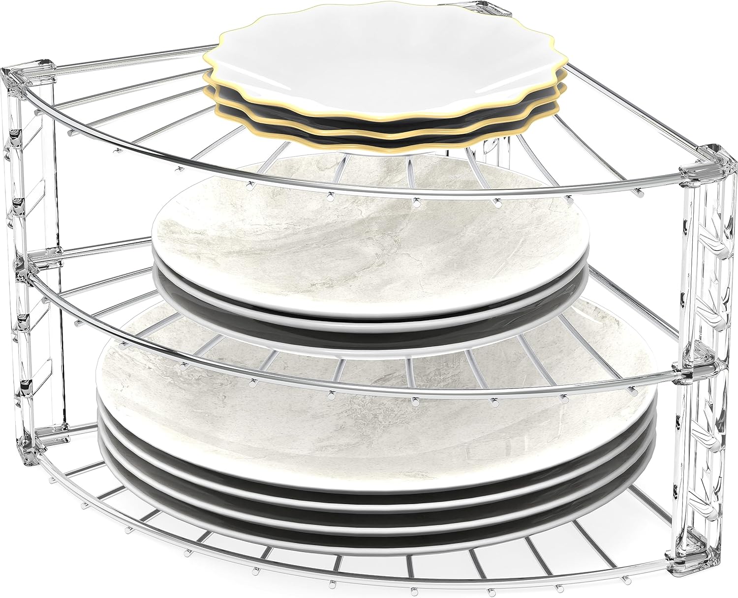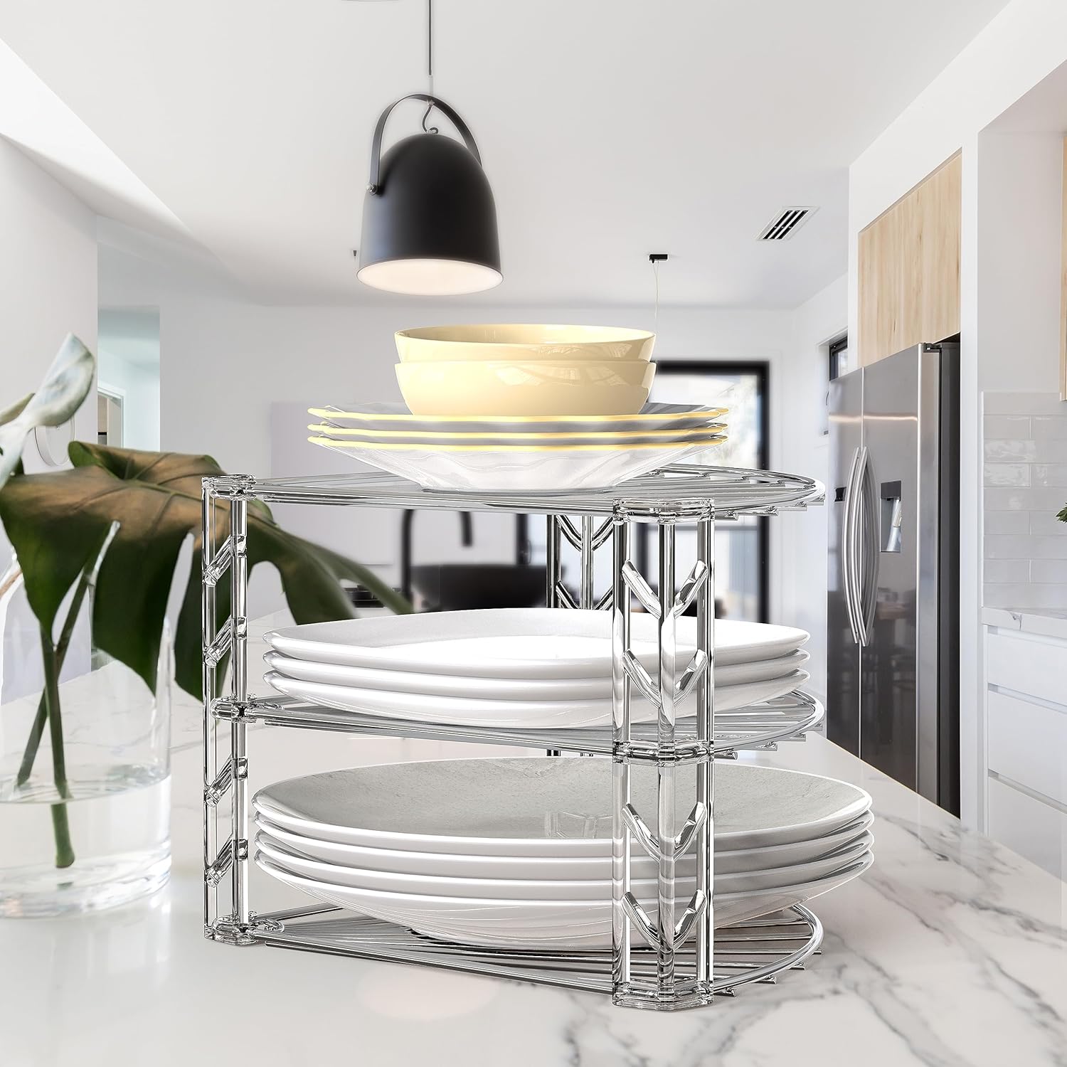 - 3 Tier Shelf to store 3 Pans, Lids, or dishware in your cabinet