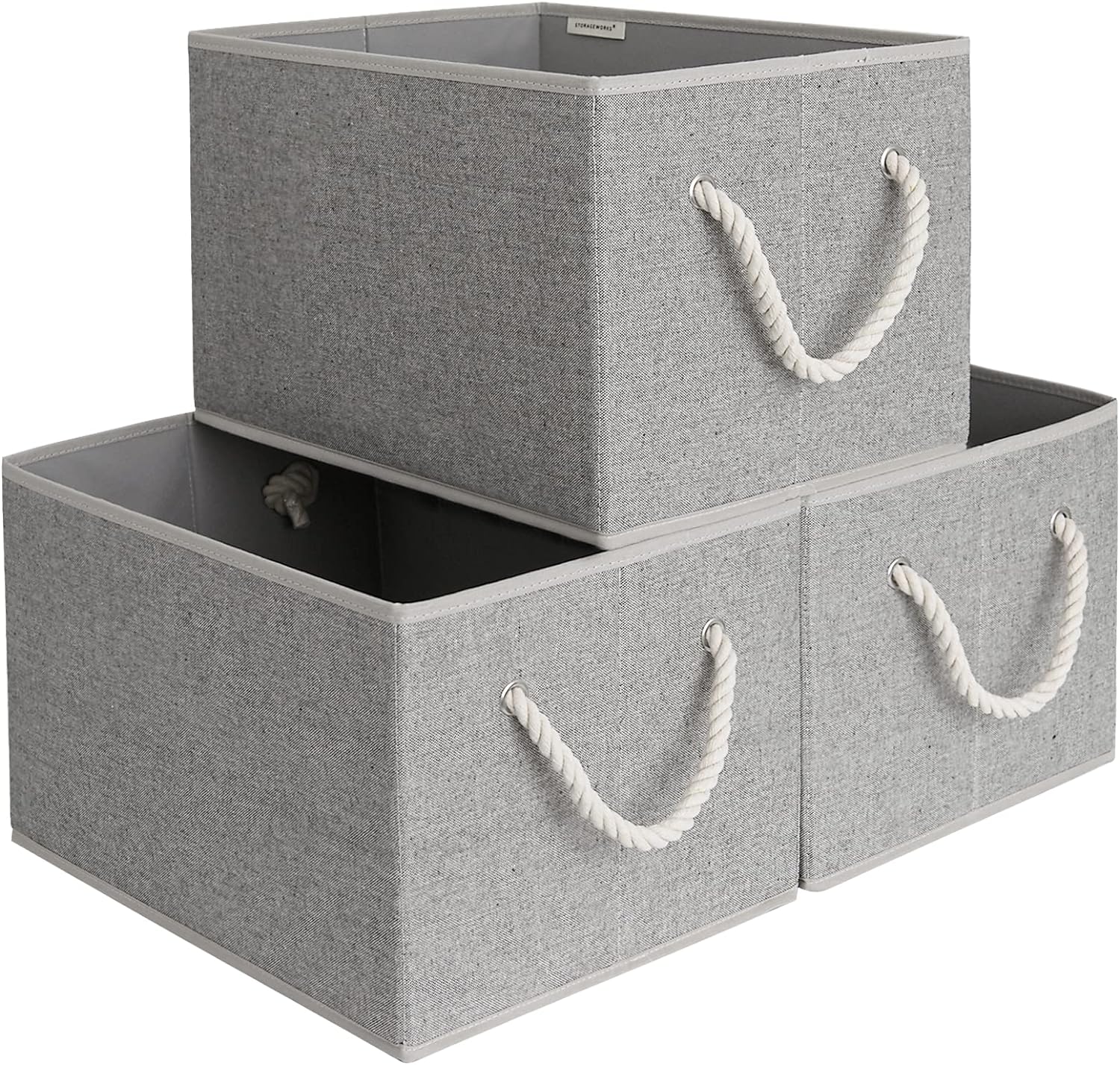 StorageWorks Storage Baskets for Shelves, Foldable Fabric Closet Storage Bins with Handles, Fabric Storage Bins Clothes Organizer, Gray, 3-Pack, Extra Large