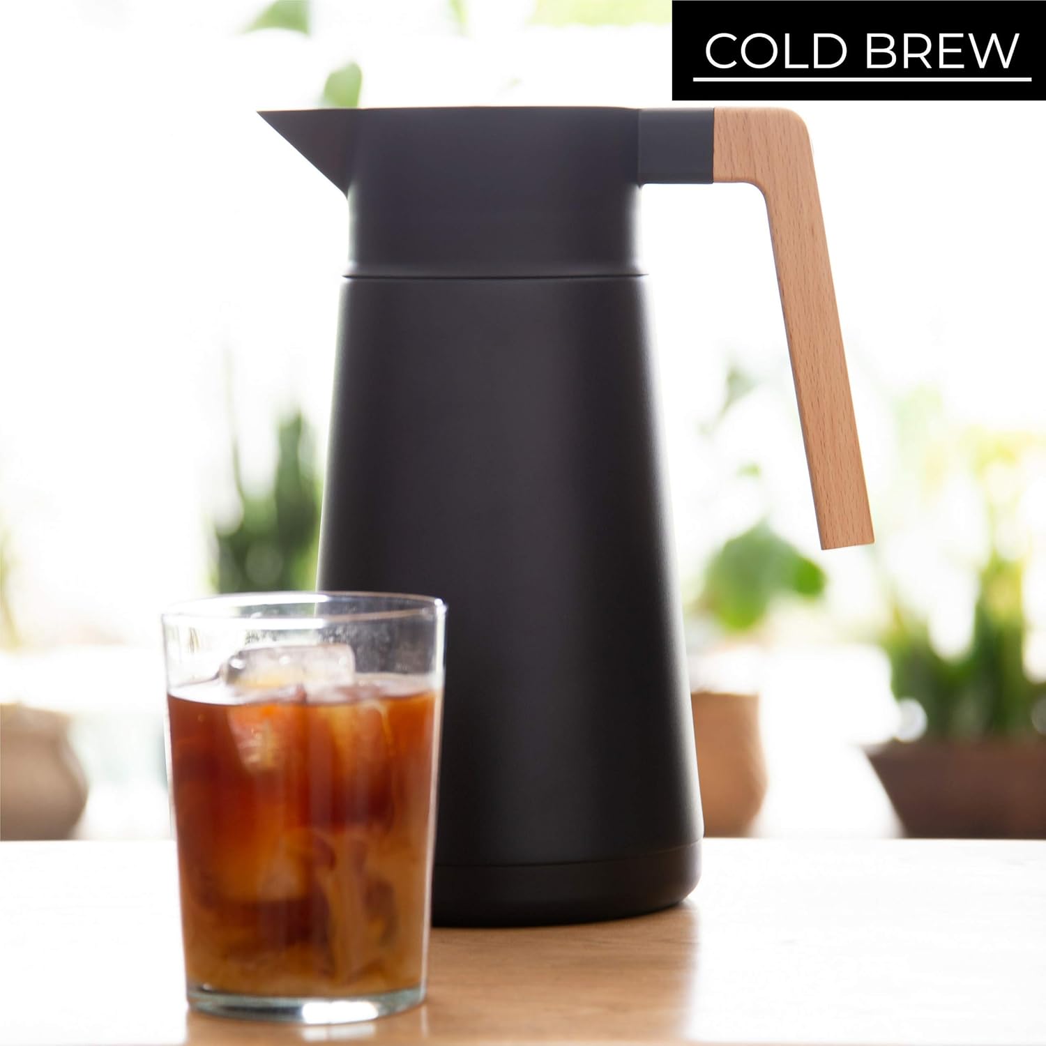 - VACUUM INSULATED carafe for coffee, juice or water. Also makes great cold brews. Designed for maximum temperature retention. Perfect coffee thermos carafe for: home, office or travel use