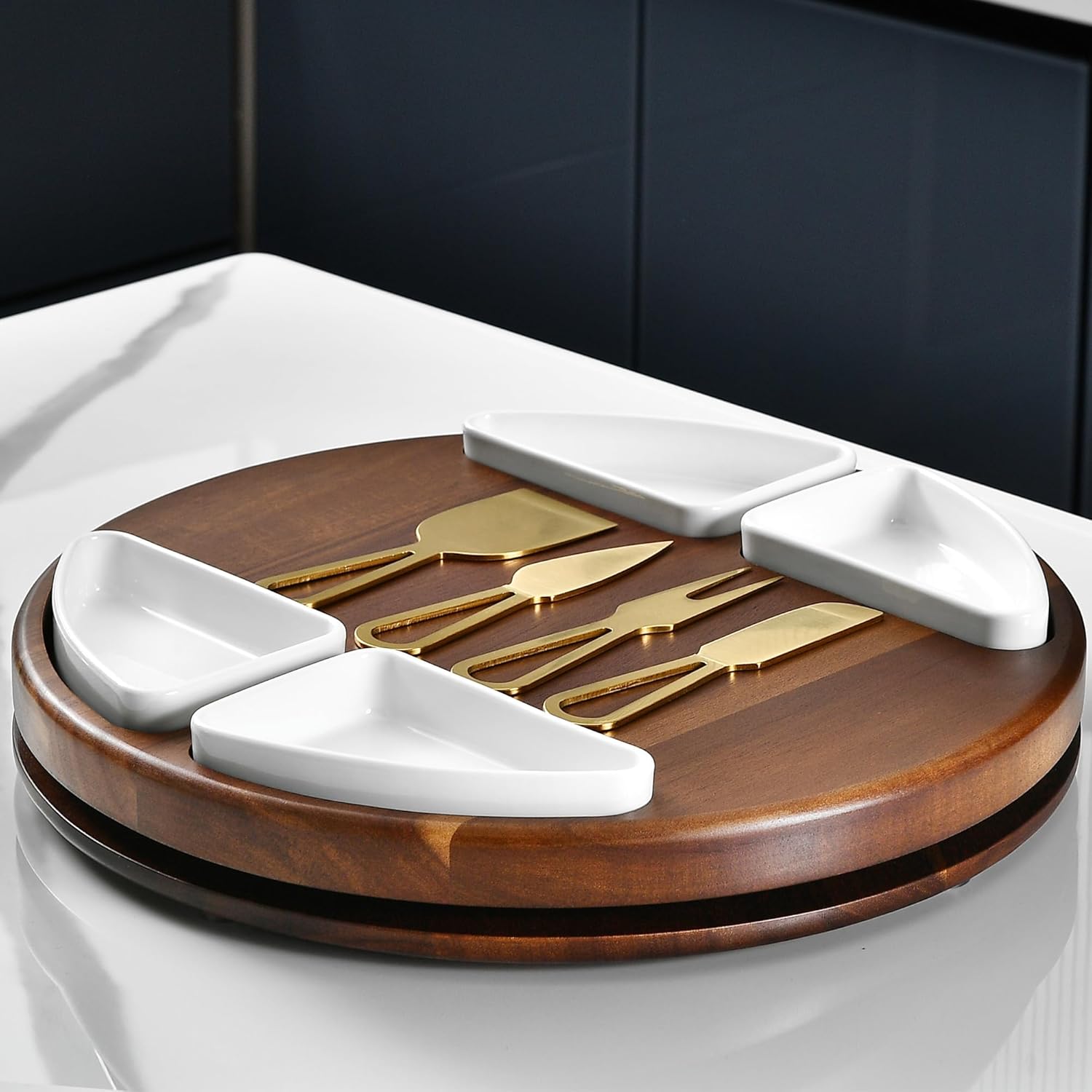 - Elevate Your Entertaining Experience: This Shanik Lazy Susan charcuterie board, crafted from premium Acacia wood, acts as the perfect centerpiece for any gathering, providing an elegant and functional platform to serve an array of cheeses, meats, and more. Immerse friends and family in a world of flavors with easy access and effortless spin, making hosting easy and luxurious.