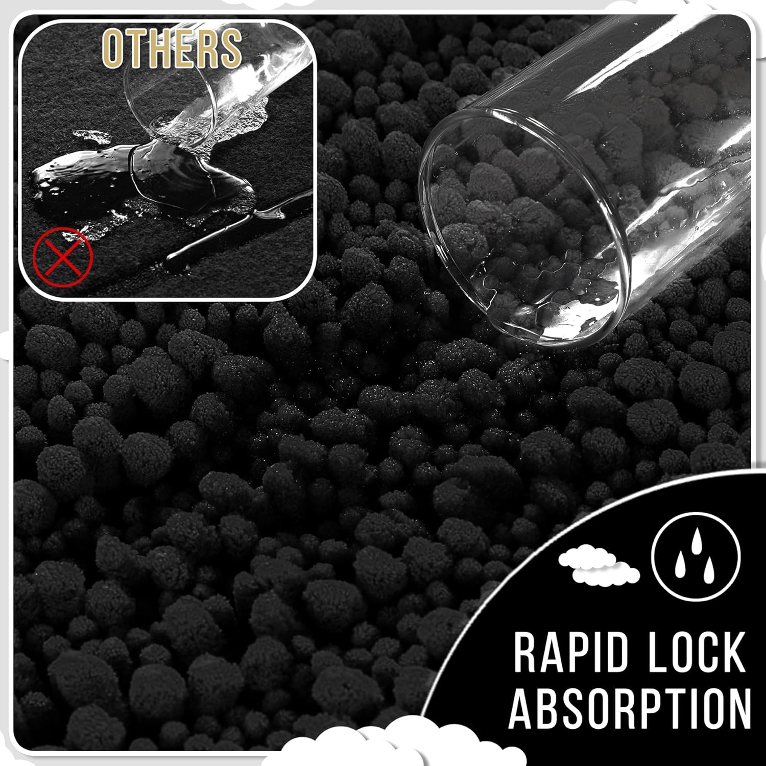Yimobra Bathroom Rugs Non Slip Washable 32x20 Inch - Ultra Soft Absorbent Chenille Bath Mat, Quick Dry Shaggy Floor Carpet for Tub Shower, Black Home Decor Accessories