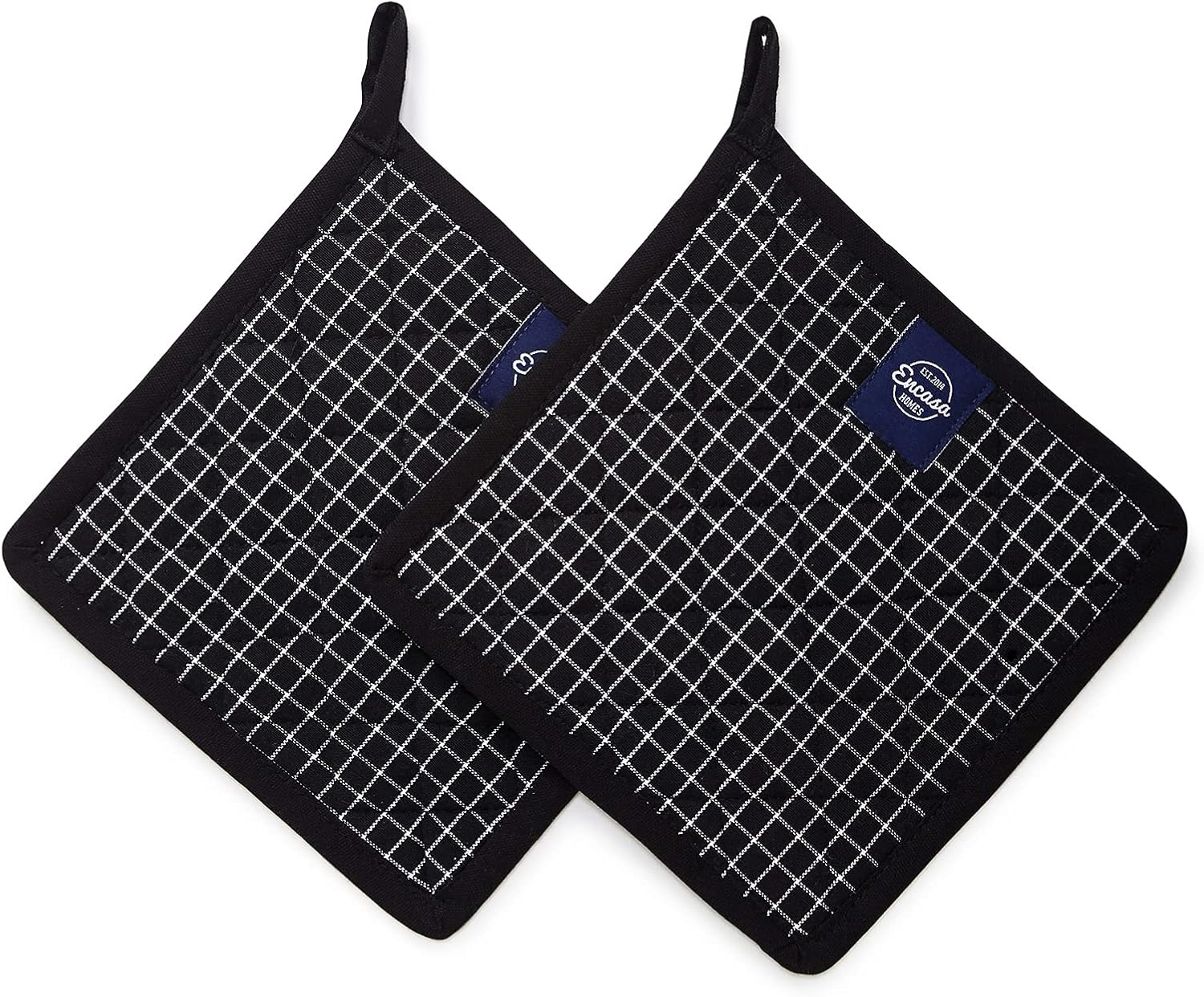Encasa Homes 8 inches Oven Microwave Potholders (2 pc Set) for Kitchen Cooking & Baking - Heat Resistant, Thick & Safe, Protection of Hands from Hot Utensils - Butcher Checks Black