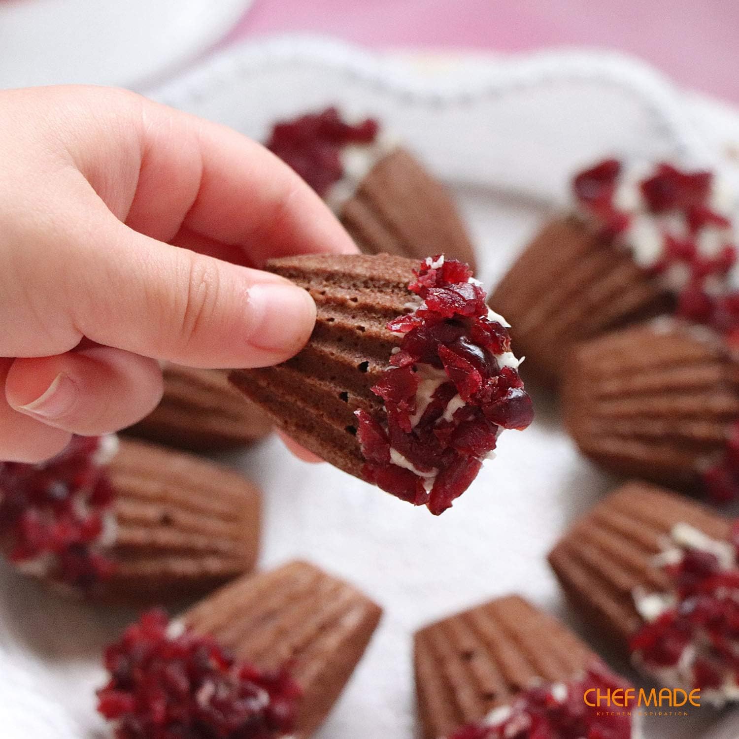 CHEFMADE Mini Madeleine Mold Cake Pan, 16-Cavity Non-Stick Tiny Oval Shell Madeline Bakeware for Oven Baking (Champagne Gold)