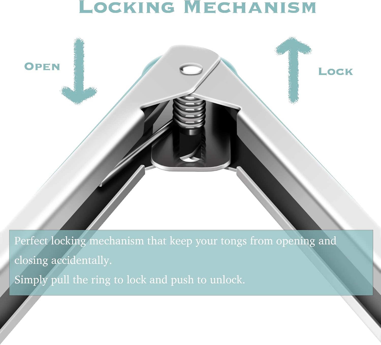 9-Inch & 12-Inch Cooking Tongs, Premium Silicone Set of 2 BPA Free Non-Stick Stainless Steel BBQ Grilling Locking Food Tong, Aqua Sky